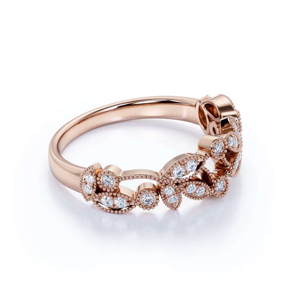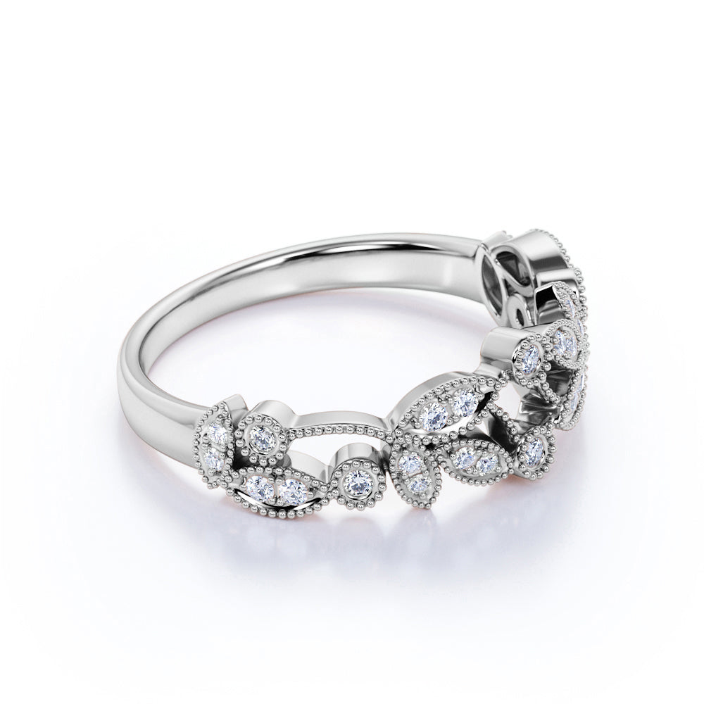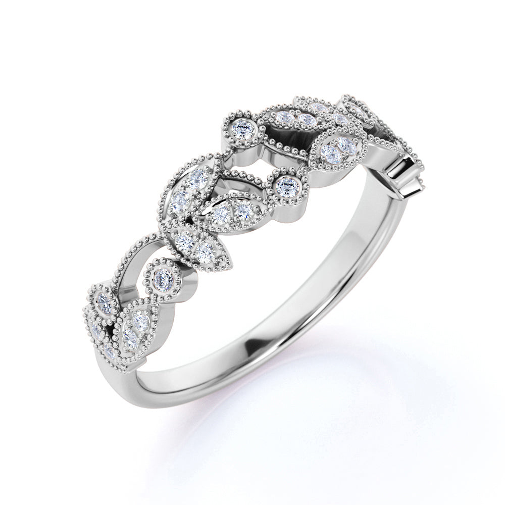 What better way to begin your eternal love story but with this .30 ct-Diamond Wedding Band-Vintage Style-Milgrain-Stackable Ring. This antique natural Diamond ring for women will surely complement any style your sport. This genuine Diamond ring is perfect for any occasion whether as a gift for Valentines, birthday, anniversary, or mother's day. This stackable Diamond ring is adorned with a gorgeous array of genuine natural Diamond center stones with a total weight of 0.30 carats. The enchanting play of light that it radiates is depicted through an alluring scintillation of spectral colors. Make a loved one happy or simply treat yourself with this everlasting piece that can be cherished for years to come. Each of our jewelry pieces are meticulously handcrafted by our passionate artisans and as your satisfaction is our priority, all orders come with a 30-day refund policy. This wedding band can be customized in 18K white, rose, yellow, or black gold over silver, or in 10K, 14K, and 18K gold, based on your preference.
