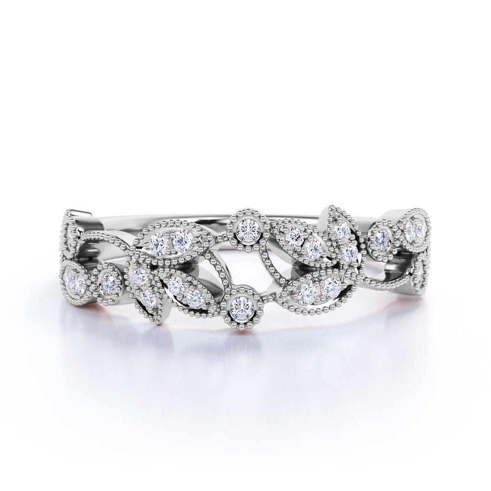 0.30 ct - Vintage Style - Milgrain - Stackable Ring
