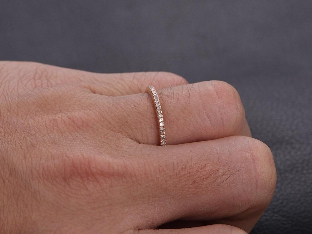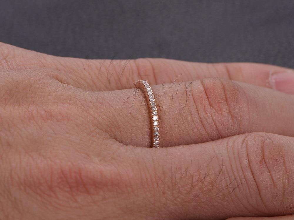 .35 Carat Semi Eternity Round cut Diamond Wedding Ring band in Rose Gold. Handmade and customized to perfection, this beautiful band is made on real solid 10k Gold. Your order also comes with a Jewelry certificate and 30 Days Full Refund policy. Please note that the 30 days refund date only starts from the date the order is delivered to you.
