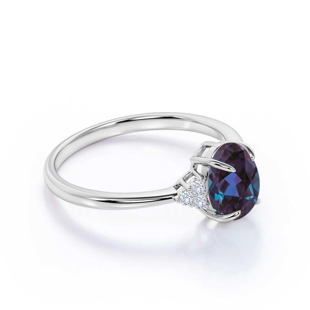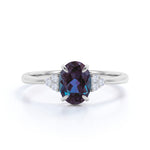 4 Claws Prong Basket 1.15 Carat Oval Cut Simulated Alexandrite and Diamond 7 Stone Engagement Ring