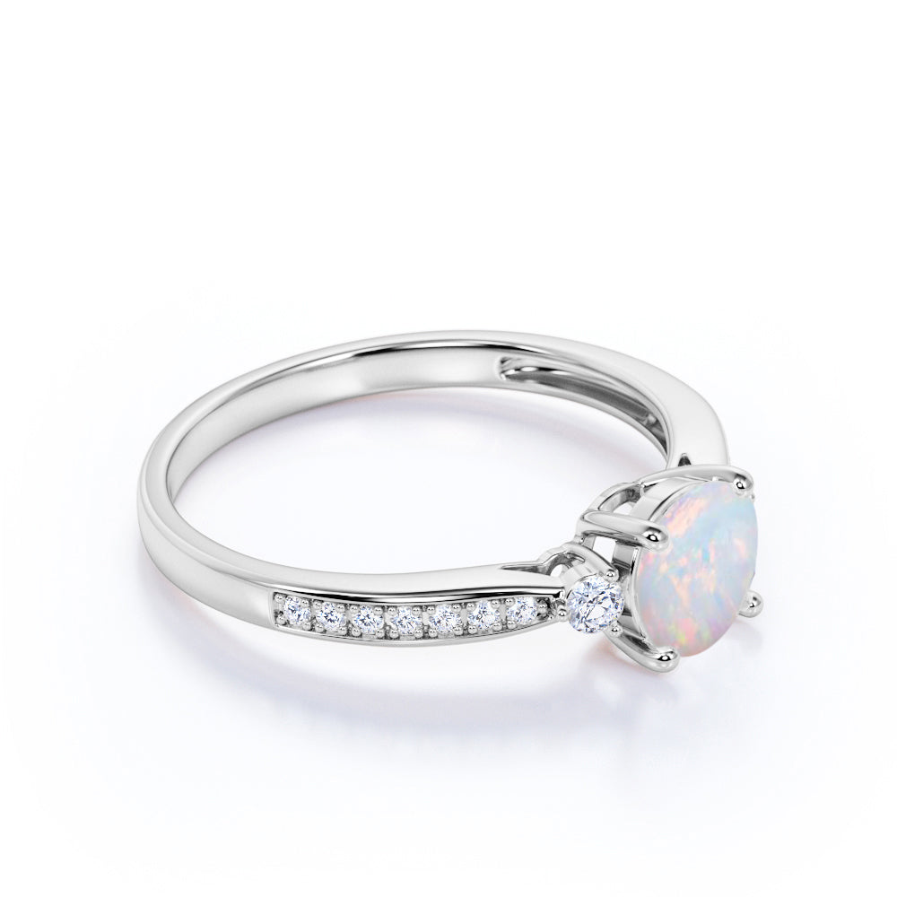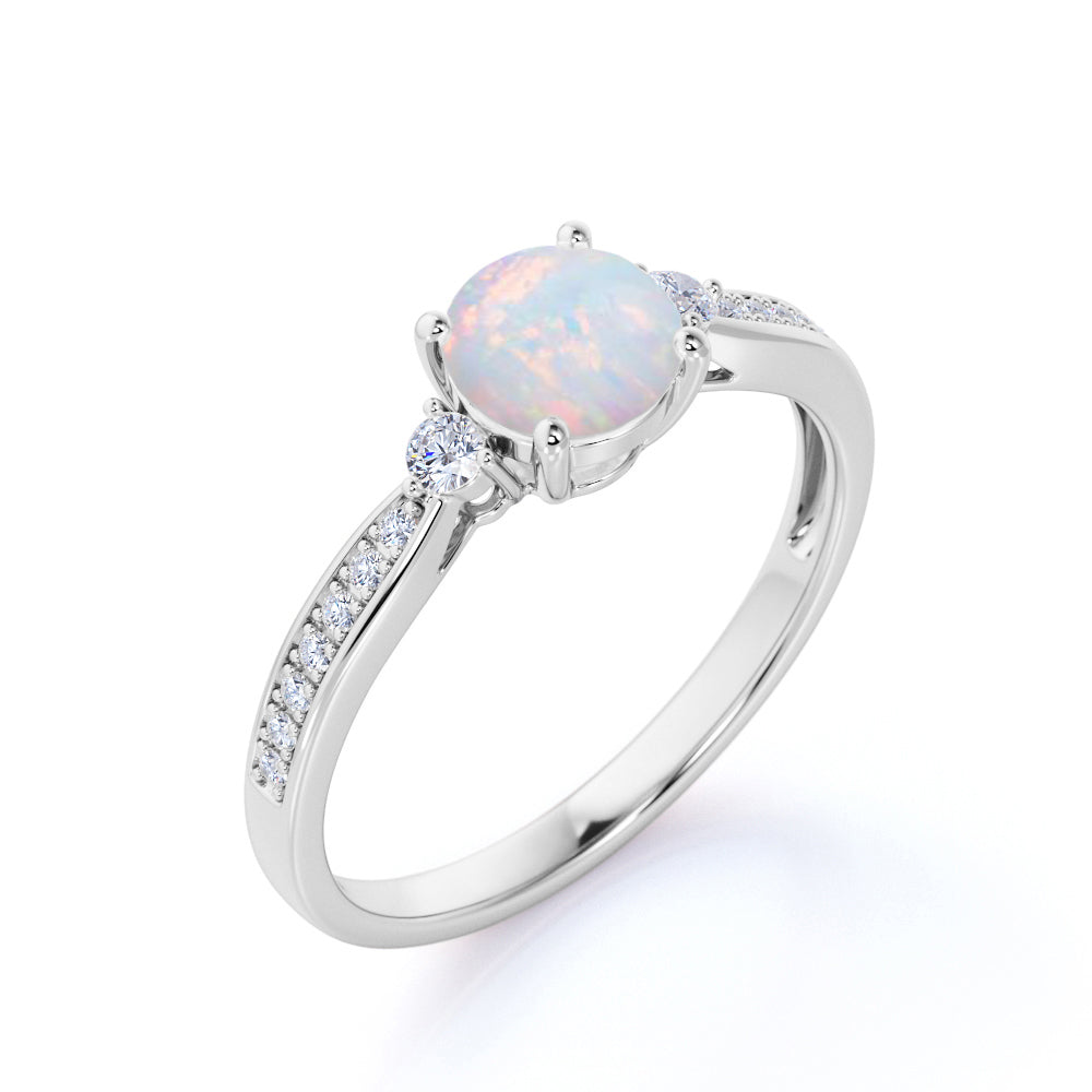 Three-Stone 1.10 Ct Round Cut Lab Created Opal Engagement Ring