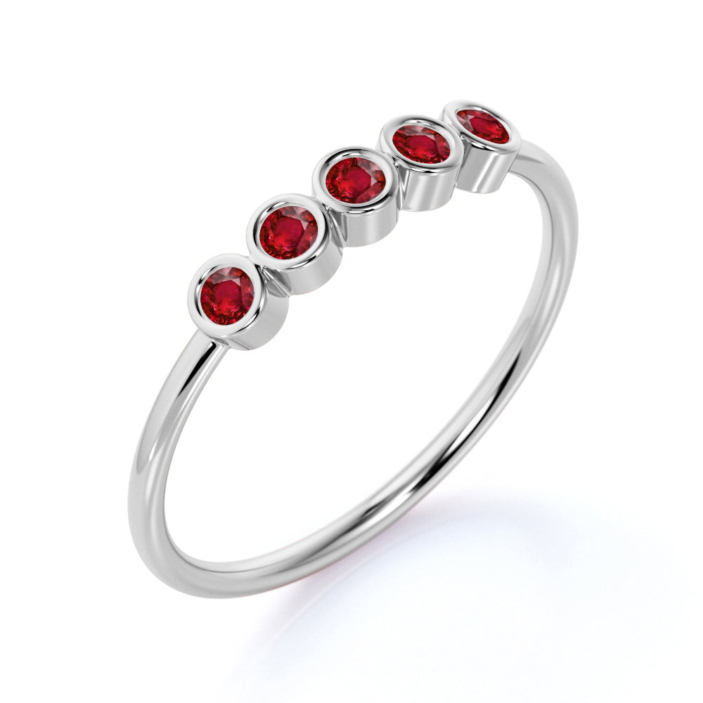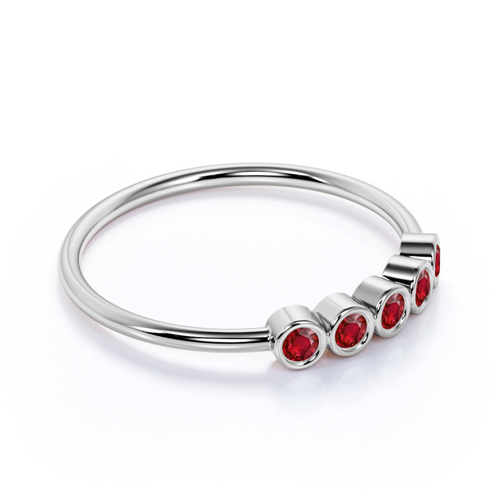 5 Stone 0.25 ct Lab-Created Ruby Bezel Stackable Ring