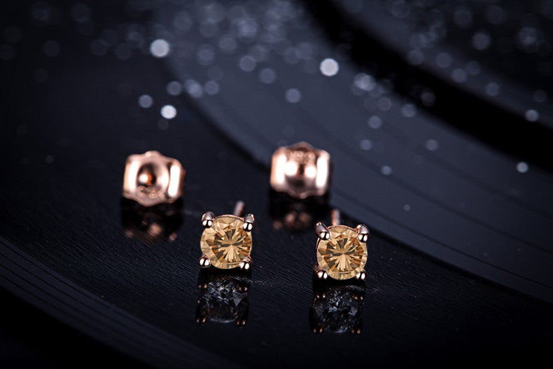 .50 carat Round Brilliant Champagne Diamond Solitaire Stud Earrings in 10k Rose Gold