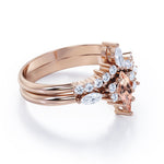 7 Stone Ring - 0.65 carat Kite Morganite and Moissanite Bridal Ring Set in Rose Gold