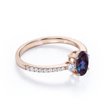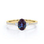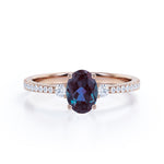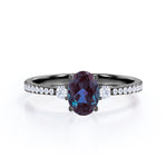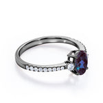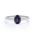 Affordable 1.40 Carat Oval Cut Lab Created Alexandrite And Diamond Four Prong Pave Engagement Ring In White Gold