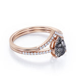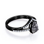 1.40 ct Pear Black Rutilated Quartz V Style Pave Bridal Set
