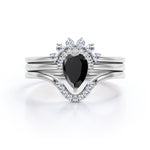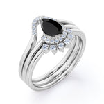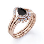 Dainty 1.35 Carat Pear cut Lab Black Diamond Antique Wedding Trio Ring Set in Rose Gold