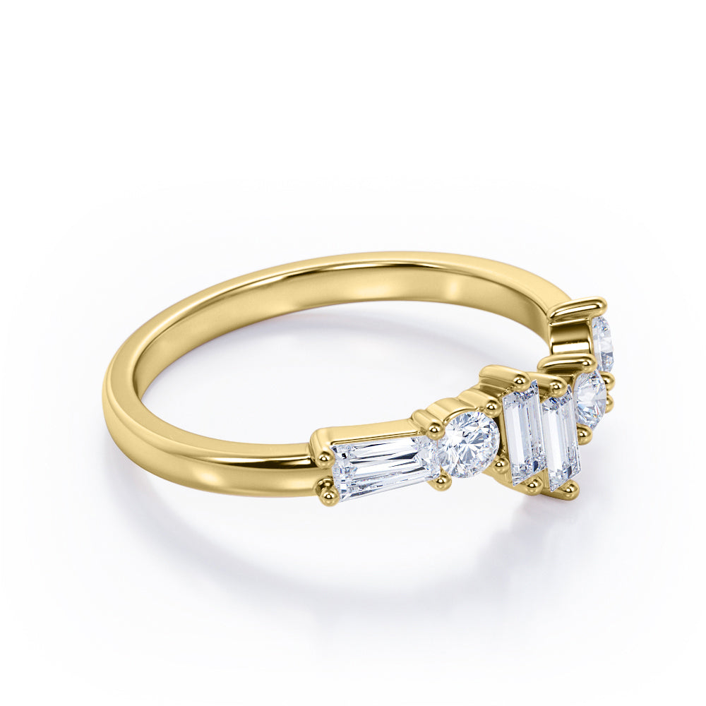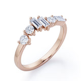 Alternating Dainty Band 1.5 carat Baguette and Round Moissanite Wedding Band in Rose Gold