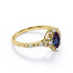 Antique 1.45 Carat Oval Cut Lab Created Alexandrite And Diamond Art Deco Style Engagement Ring In White Gold. Select a piece that reflects you, that you want to wear to celebrate your love and pass down to someone special one day. This lab made alexandrite and diamond engagement ring will create a timeless look on your finger. This antique engagement ring features 1 carat oval shaped alexandrite at the center and 0.45 carat of dainty round cut white diamonds set in a marquised shaped setting. With its mesmerizing color change variety and unparalleled vibrancy, this flawless alexandrite ring will enchant your special someone with gracefulness. Customizing your very own ring is the best way to get the look you love at a price point that works for you. As all our products are handmade by our experienced artisans, this antique 1.45 carat oval cut lab created alexandrite and diamond seven stone engagement ring in white gold can also be customized to 18k Gold plating over silver, 10k Gold or 14k Gold as per your preference.