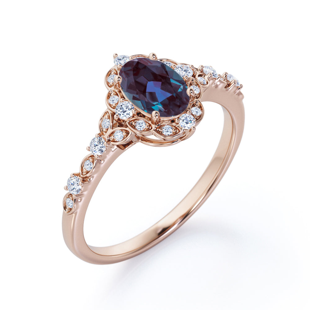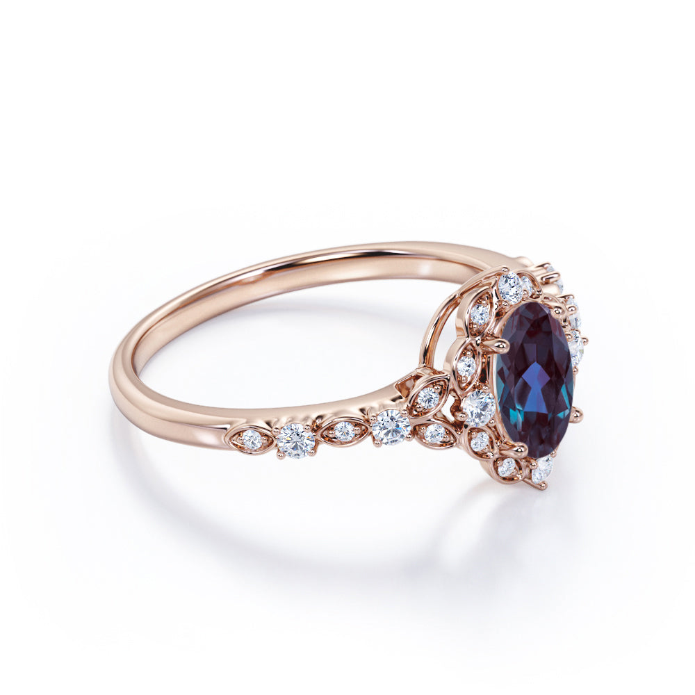 1.45 Ct Oval Lab Alexandrite Art Deco Engagement Ring
