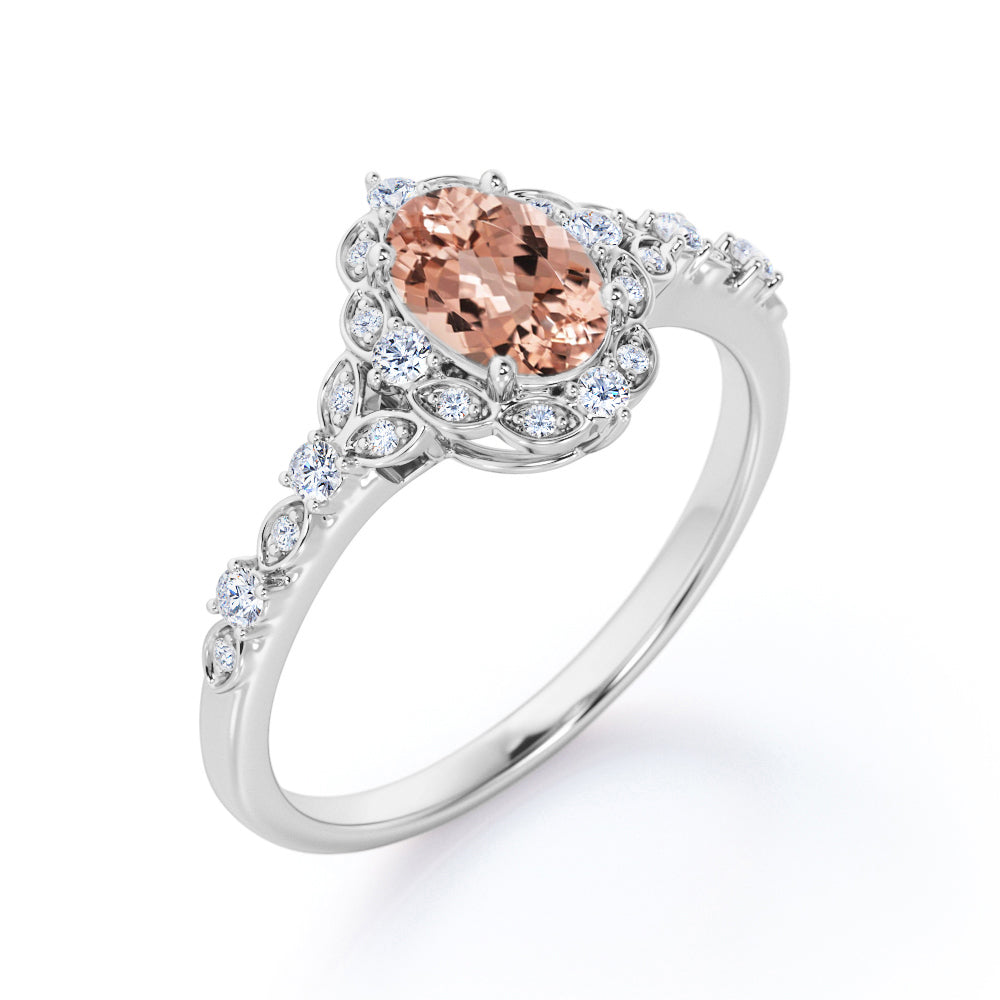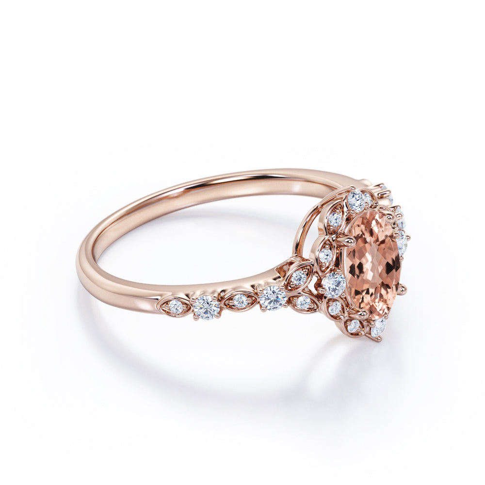 Antique 1.50 ct Oval Morganite Halo Engagement Ring