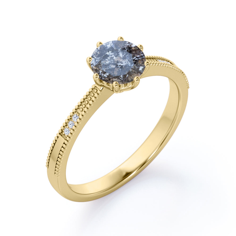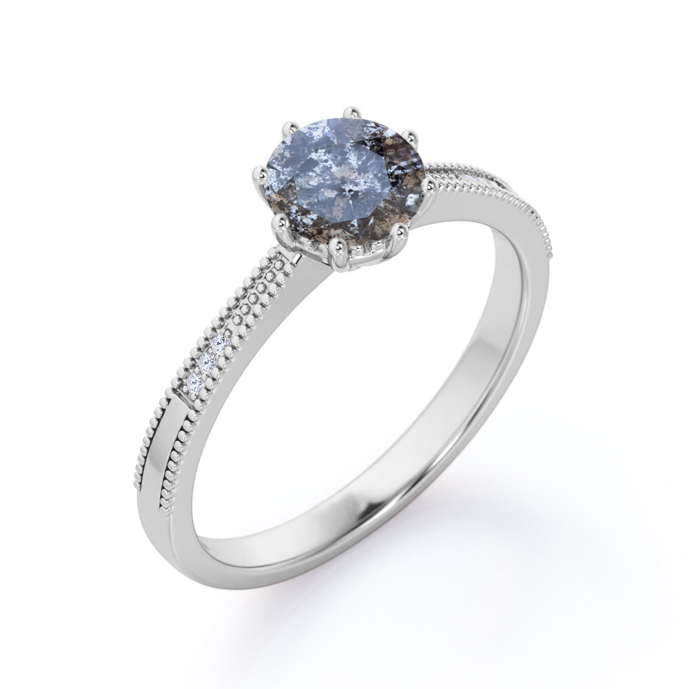0.55 Ct Round Salt and Pepper Diamond 8 Prong Engagement Ring