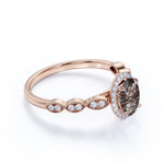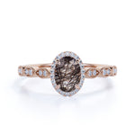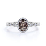 Antique Art Deco 1.50 Carat Oval Cut Transparent Black Brown Rutile Quartz and Diamond Halo Engagement Ring