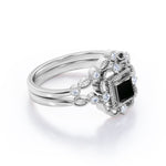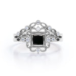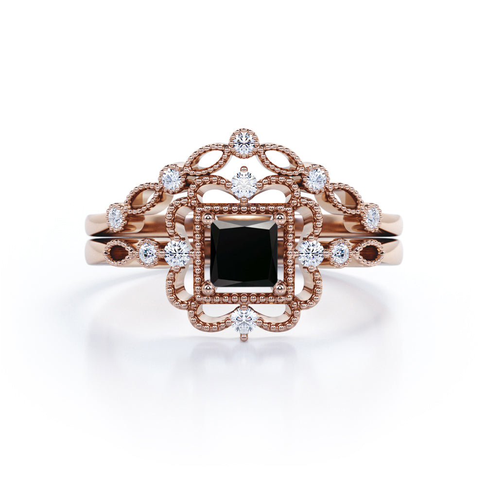 Antique Artdeco 1.25 Princess cut Lab Black Diamond Wedding Bridal Set in Rose Gold