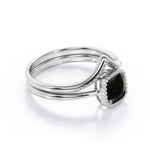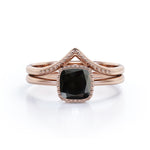 Antique Artdeco 1.25 Cushion cut Lab Black Diamond Wedding Bridal Set in Rose Gold