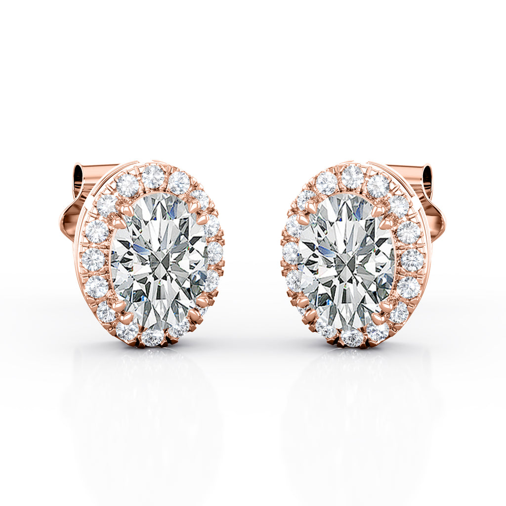 Antique Claw Set 0.85 CT TDW Oval Cut Certified Lab Diamond Halo Stud Earrings in Yellow Gold