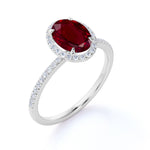 Antique Design 1.50 Carat Oval Cut Lab Ruby and Diamond Halo Engagement Ring in White Gold