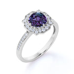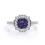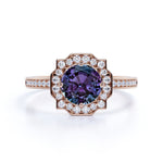 Antique Floral Bezel Set 1.50 Carat Round Cut Created Alexandrite and Diamond Channel Set Rings Engagement Ring
