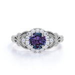 Antique Floral Milgrain 1.25 Carat Round Cut Created Alexandrite and Diamond Cluster Engagement Ring - Gifts for Her