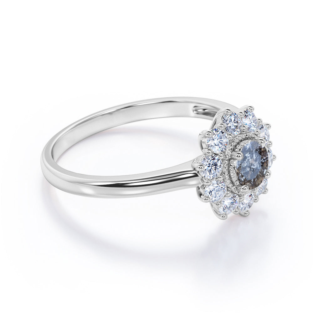 Flower 1 Ct Round Salt and Pepper Diamond Engagement Ring