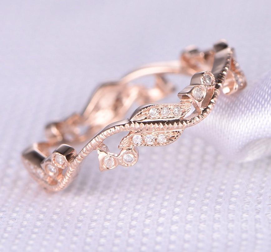 0.25 Carat Antique flower design milgrain .10 Carat Wedding Ring Band in Rose Gold. The band is made on real solid 10k Gold. The order comes with Jewelry Certificate, and 30 Days Full Refund policy.