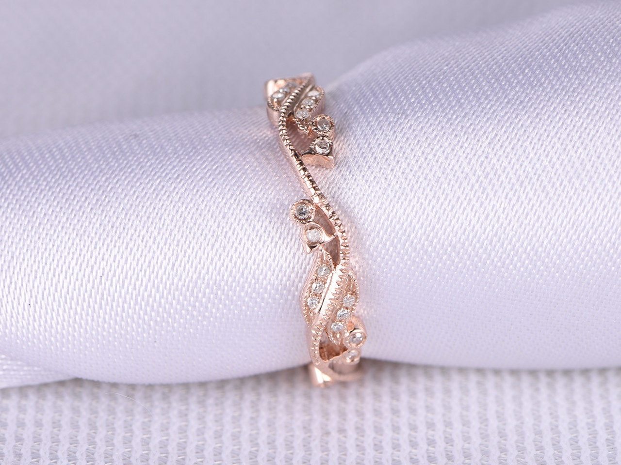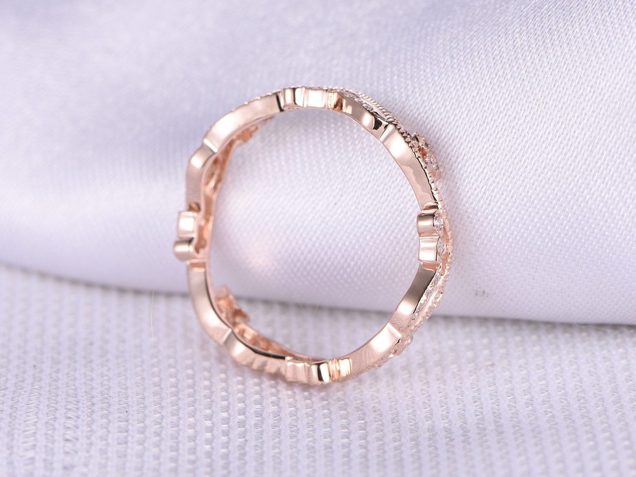 0.25 Carat Antique flower design milgrain .10 Carat Wedding Ring Band in Rose Gold