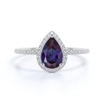 1.50 Ct Pear Lab Alexandrite Semi Eternity Engagement Ring