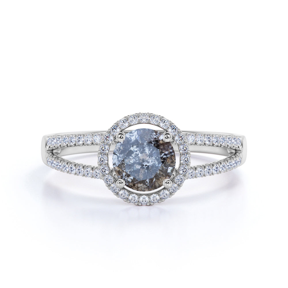Halo 1.25 Ct Round Salt and Pepper Diamond Engagement Ring