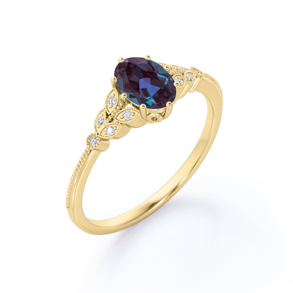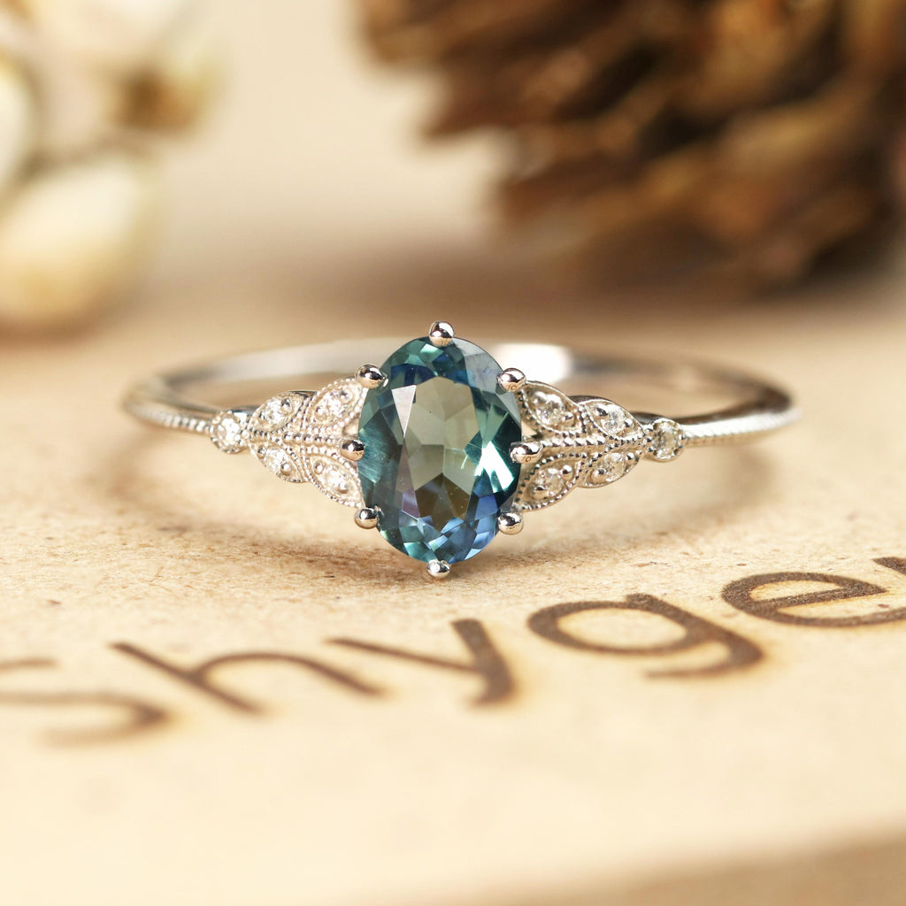 Vintage 1.25 Ct Oval Lab Alexandrite Engagement Ring