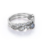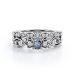 IMPORTANT NOTE: Since each Salt and Pepper Diamonds is one of a kind, the actual color of it may vary from the one that is pictured above. Being a very unique gemstone, this Antique Twist Solitaire 0.75 Carat Round Cut Fancy Black Grey Salt and Pepper Diamond with Diamond Marquise Dot Band Wedding Ring Sets is perfect for your enchanting love story. This vintage ring features .25 carat round cut natural Salt and Pepper Diamond and .50 carat real side Diamond for gold ring and Moissanite for silver ring. This exquisite bridal set rings can be customized to either 10k, 14K and Gold over Silver and either Black Gold, Rose Gold, White Gold or Yellow Gold. Also, as your satisfaction is our most priority, we will do our best to have your handmade jewelry be carefully and beautifully crafted by our expert jewelers. The order also comes with a 30-day full refund policy. This ring will be a perfect gift for any occasions: birthday, anniversary, proposal, Valentine's day, Christmas, and any other special events. This ring is very exclusive due to the unique inclusions of Salt and Pepper Diamond that appears black and white. Ornament and distinguish your love story with the neat distribution of black and white inclusions of Salt and Pepper Diamond. It provides an ideal way to stand out from crowd with a gorgeous and distinctive ring. This antique ring is available at a very affordable price yet it offers a very expensive and gorgeous look on your finger. Its inclusions will distinguish your ring offering a unique look on your finger . Sparkle your finger with this ring which is perfect for any occasion and everyday wear. Diversity of Salt and Pepper Diamond provides additional character to your traditional engagement ring. Handcrafted with love, this antique ring will complement any style and enhance the charm of its wearer.
