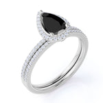 Antique Vintage 1.75 Carat Pear cut Black Diamond Halo Wedding Ring Set for Women in White Gold. Wonderful vintage design sparkling black Diamond bridal ring set, perfect for her, features 1 carat perfect lab created black diamond and 0.75 carat glittering diamonds and is made in solid 10k White Gold. Handmade by our skilled artisan jeweler, this piece is truly one of a kind. And as always, the order comes with our 30 DAYS FULL REFUND policy, GUARANTEED DELIVERY within 5 Days, and in a BEAUTIFUL Jewelry Ring Box.