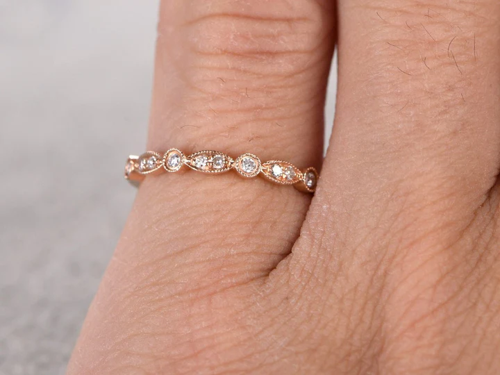 Start the greatest love story of your life with this .25 ct Vintage Milgrain Wedding Ring Band. Skillfully hand-cut into a nice round cut by our skilled jewelers, this gorgeous Moissanite wedding band that look real are composed of 0.25 carat Moissanite. Distinctive and extraordinary, this Moissanite wedding band is perfect for those who would love to express their charisma and uniqueness. With naked eyes Moissanite look, shine and feel exactly like moissanites. With its splendor, this Moissanite band that look real will enhance happiness and attract positive vibes. This Moissanite band is beautiful and accessible since they are available at a reasonable price. If you are in search of an incredibly romantic gift for your significant other, our Moissanite wedding band that look real can be a perfect gift for any occasion like engagements, Valentine's day, mother's day or anniversary. Let's fulfill your love story with this Moissanite solitaire band and, surely, she will not regret it.