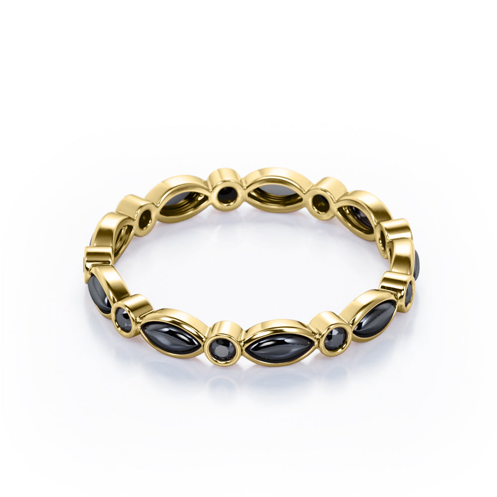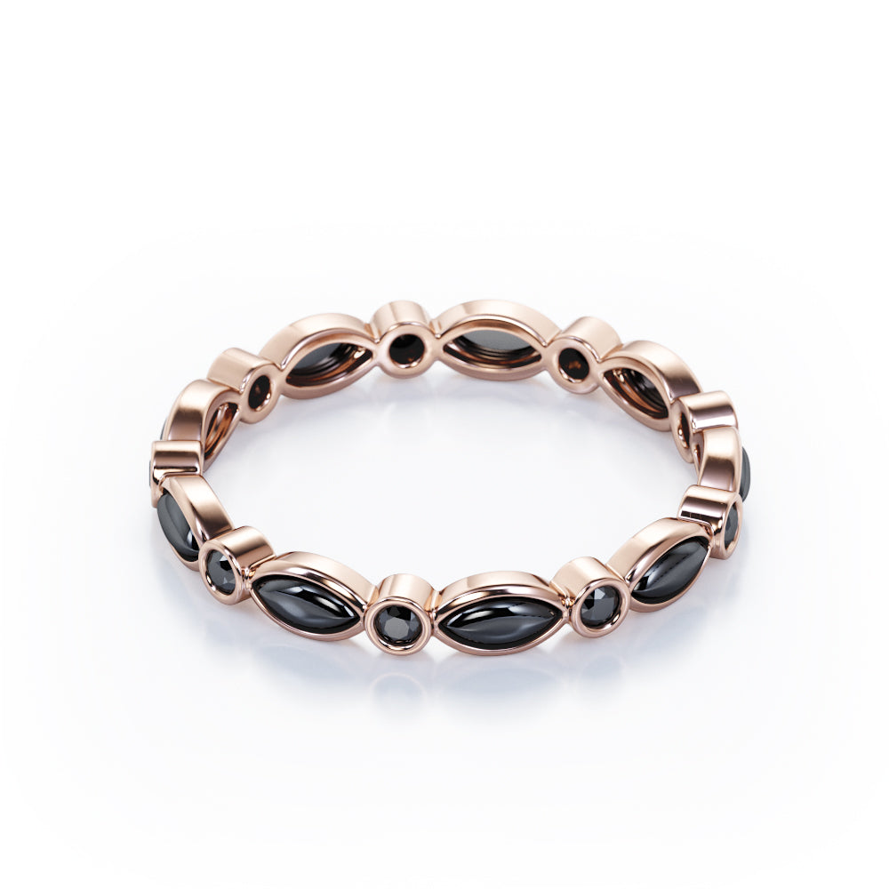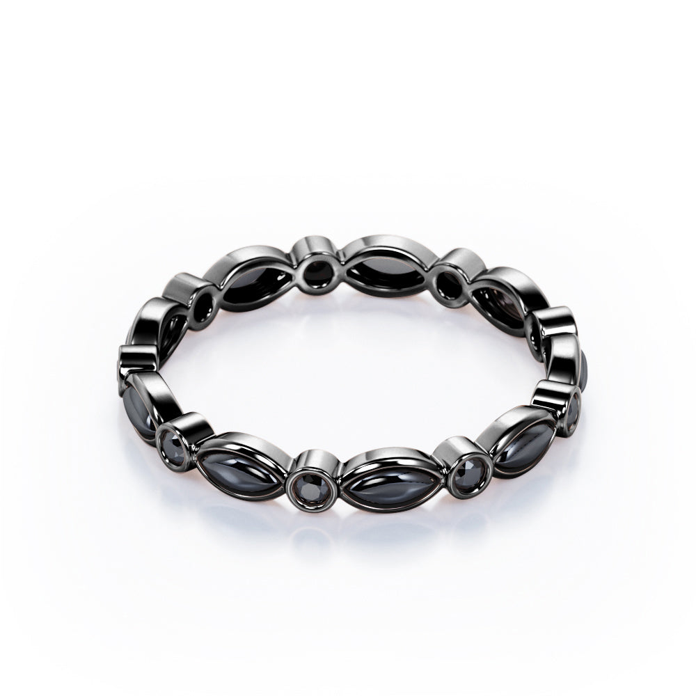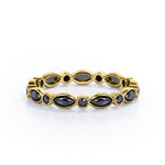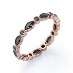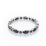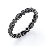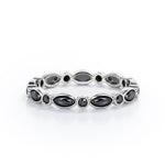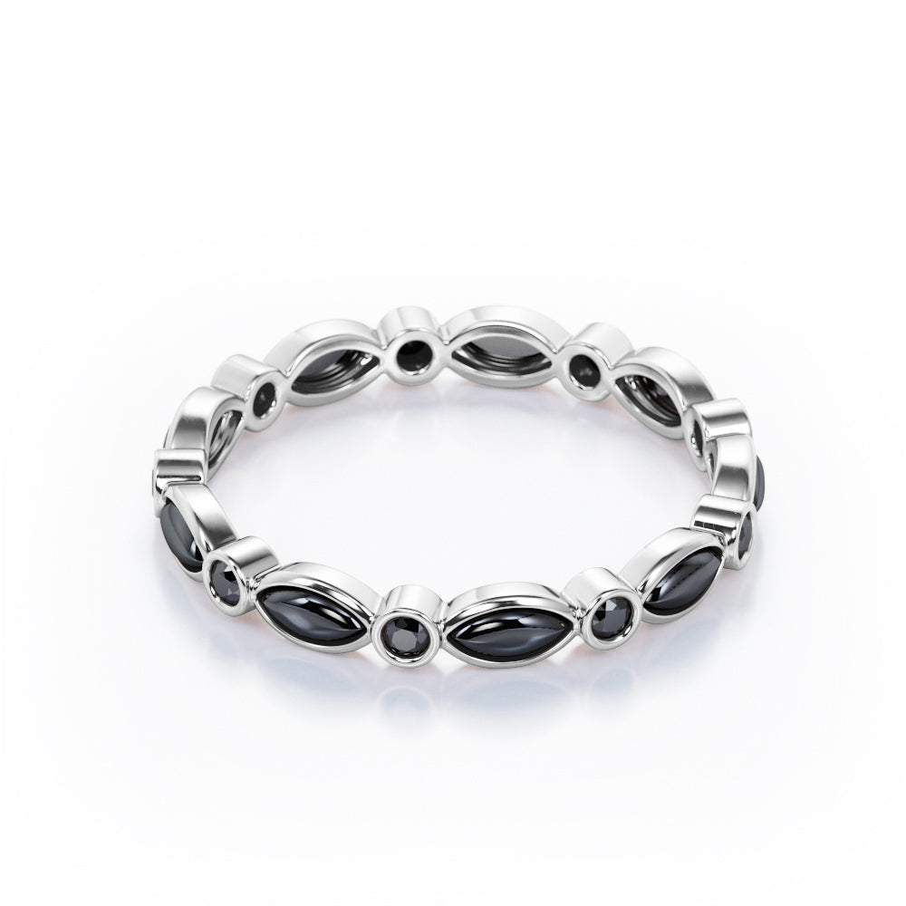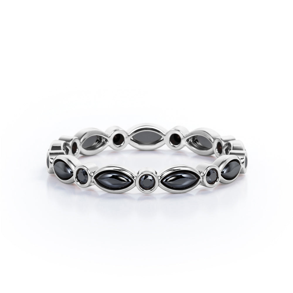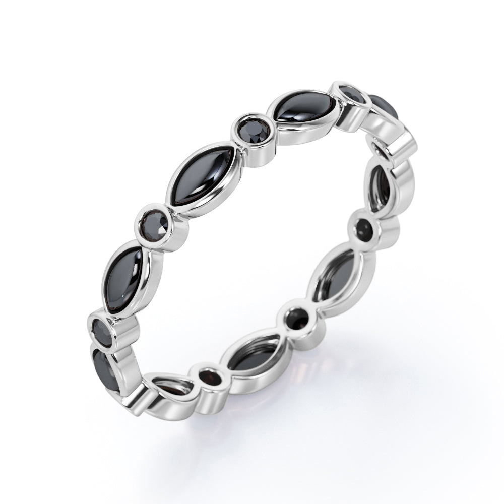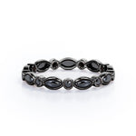 Art Deco - 0.25 TCW Round and Marquise Cut Lab Created Black Diamond - Bezel Wedding Band - 10K White Gold