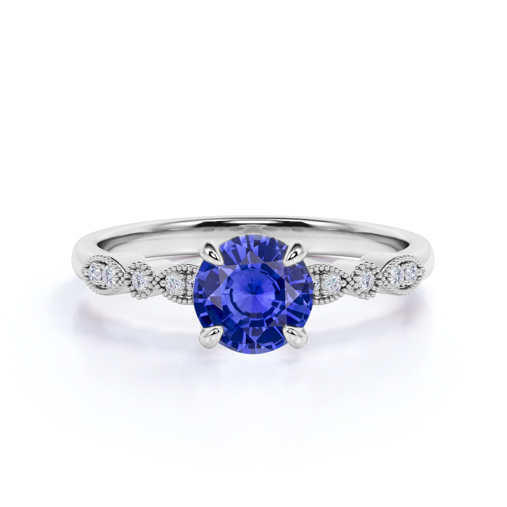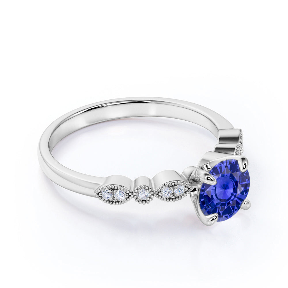 Vintage 1.15 Ct Round Cut Lab Sapphire Engagement Ring