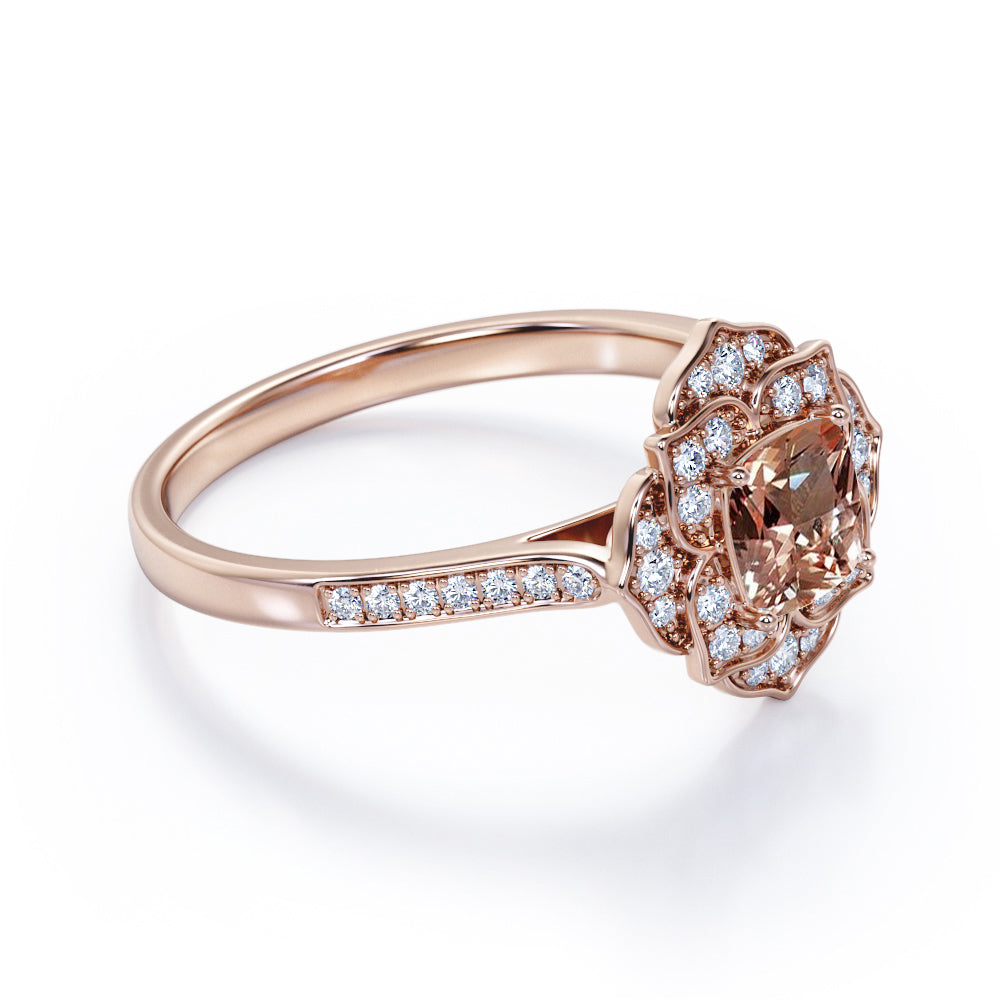 Art Deco 1.25 Carat Cushion Cut Peach Morganite and Diamond Engagement Ring in 10k Rose Gold Stunning Ring