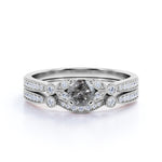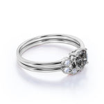 IMPORTANT NOTE: SINCE WE USE NATURAL SALT & PEPPER DIAMOND, EACH STONE WILL BE UNIQUE AND DIFFERENT IN TERMS OF COLORS AND INCLUSIONS. PLEASE BE INFORMED THAT THE CENTER STONE MAY NOT LOOK EXACTLY THE SAME AS IN THE ADVERTISED PICTURES. Be sure to please her with this Art Deco 1 Carat Round Cut Natural Salt and Pepper Diamond and Moissanite Vintage Floral Wedding Ring Set in 18k White Gold over Silver. This bridal ring set displays a 0.50 carat round cut natural salt and pepper diamond as the main stone and 0.50 carat moissanite side stones on both rings. The set includes a vintage-inspired engagement ring and an art deco contour wedding band of the same floral design with milgrain accent. Moreover, this coordinated ring set can be customized to 18k White Gold, Rose Gold or Yellow Gold over silver as per your selection. Also, as your satisfaction is our most priority, we will do our best to have your handmade jewelry be carefully and beautifully crafted by our expert jewelers. The order also comes with an elegant jewelry ring box and with 30-day full refund policy. Imperfectly perfect - Salt and Pepper Diamonds are just like any relationship. Let this beautiful gemstone be a symbol of your love life. If you don't go by the book, this wild looking gemstone is absolutely made for you. Prep and prepare the ultimate gift for your loved one with this charismatic salt and pepper diamond ring set. Wrap these rings up as a gift and be sure to impress. Whether it's a proposal, a wedding, an anniversary, a birthday, a Valentine's day or for holiday gifting - this is a suitable gift for any occasion.