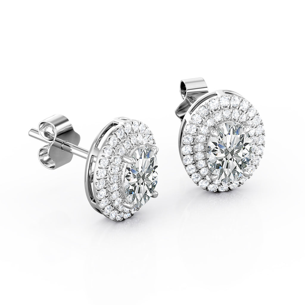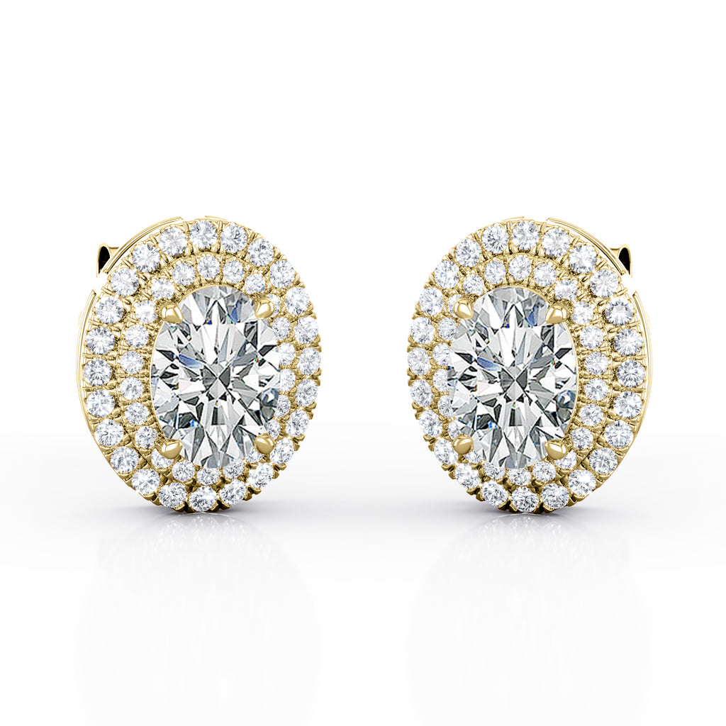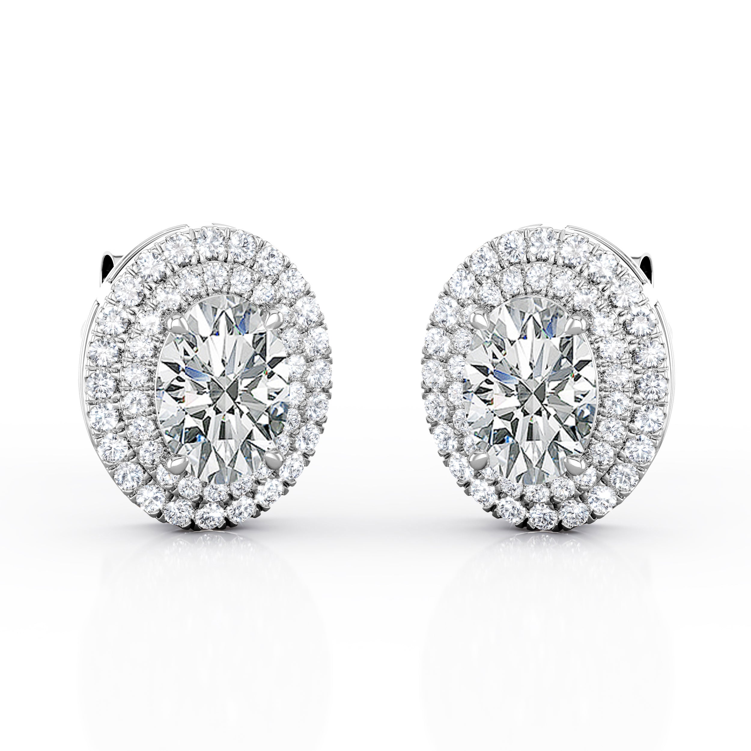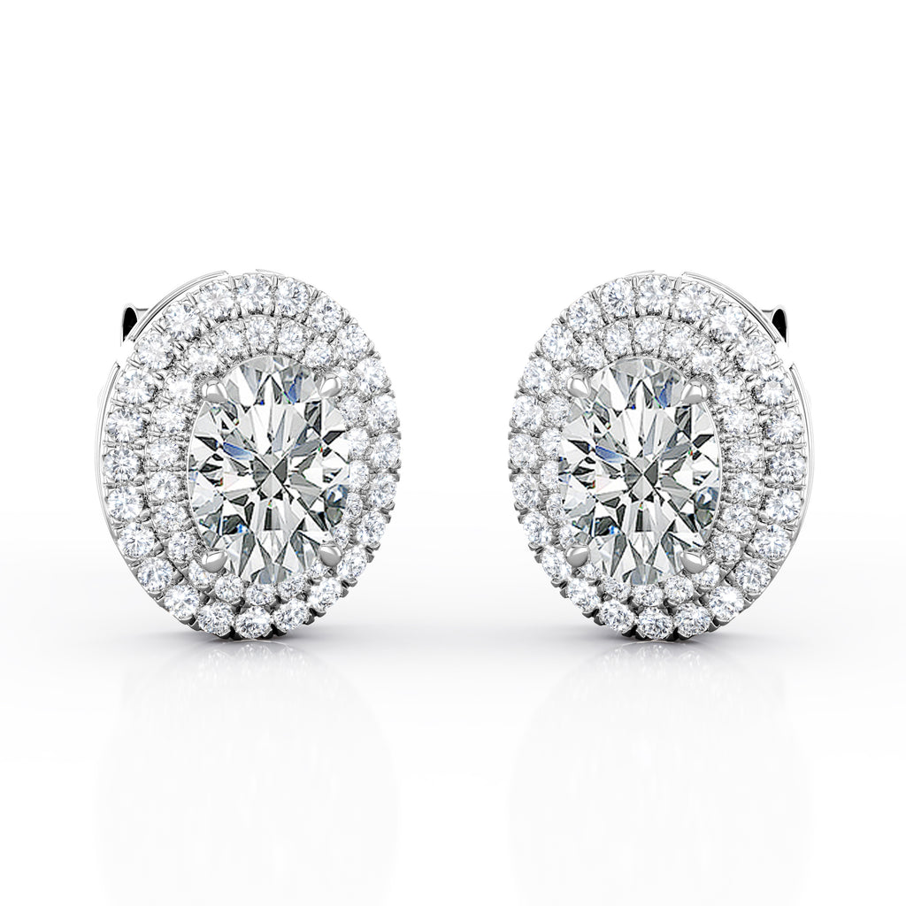 Art Deco Basket Set 2.20 Carat Oval Cut Certified Moissanite and Diamond Double Halo Stud Earrings in Rose Gold