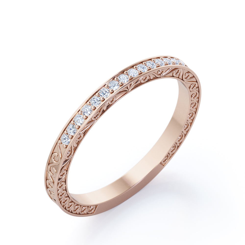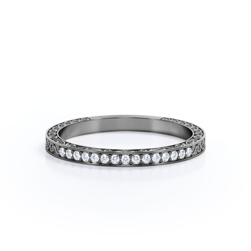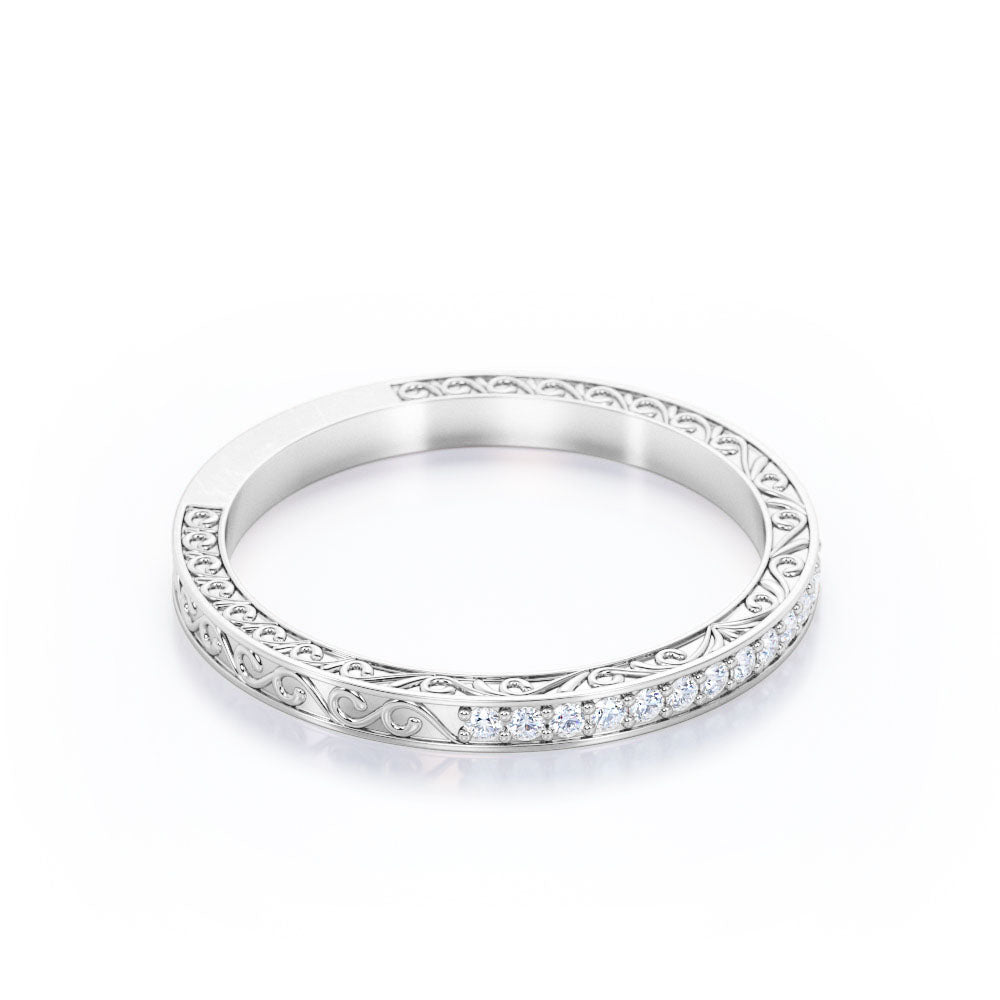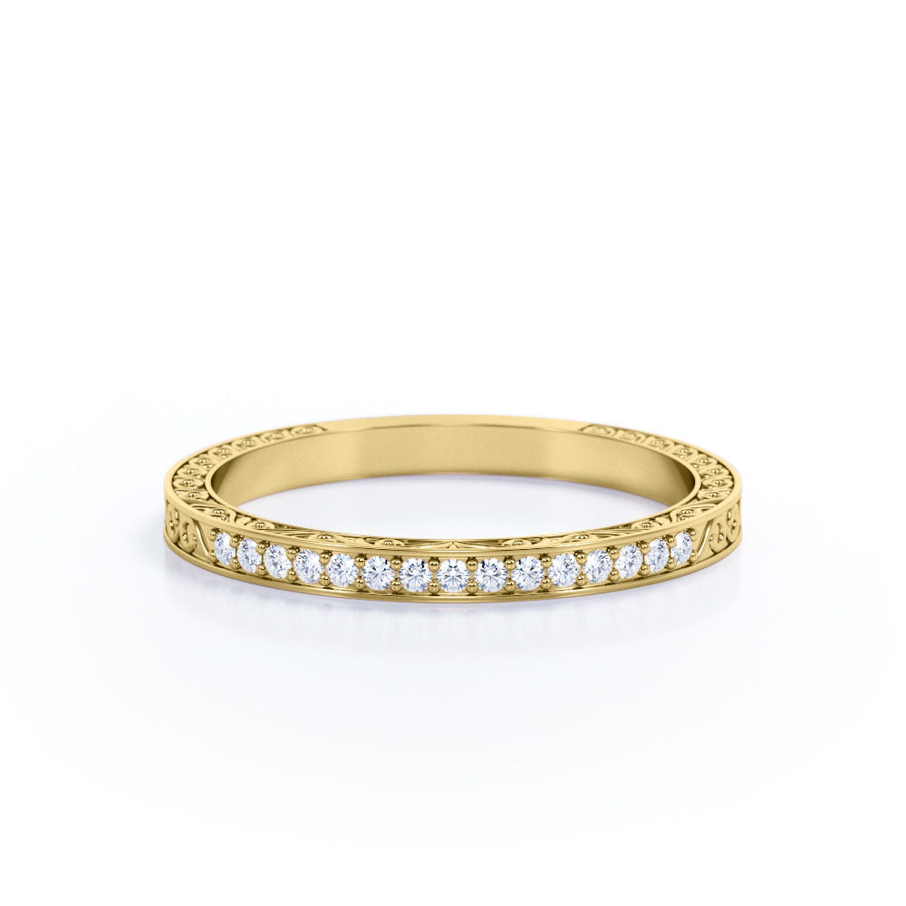 Make every day a cloud nine day with this Art Deco Edwardian Design - 0.25 Carat Round Shape Diamond - Wedding Band. Professionally handcrafted into a fine round cut by our experts in lapidary, this flawless Diamond bridal ring band comprises total 0.25 carat Diamond. Special and non-traditional, this Diamond promise ring band is well-suited for those who are not quite into normal lifestyle. With its glory and clarity, this Diamond ring band will unquestionably be an essential additional to any jewelry collection. Considered as a symbol of timeless love and affection for your lover, this near colorless Diamond ring band can definitely help you out. Let’s impress her with this Diamond promise ring band and, surely, she will not regret it.