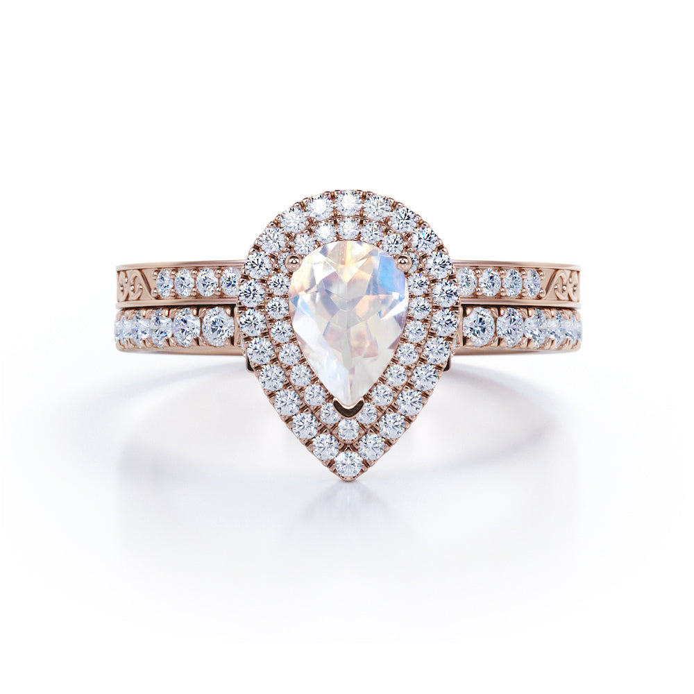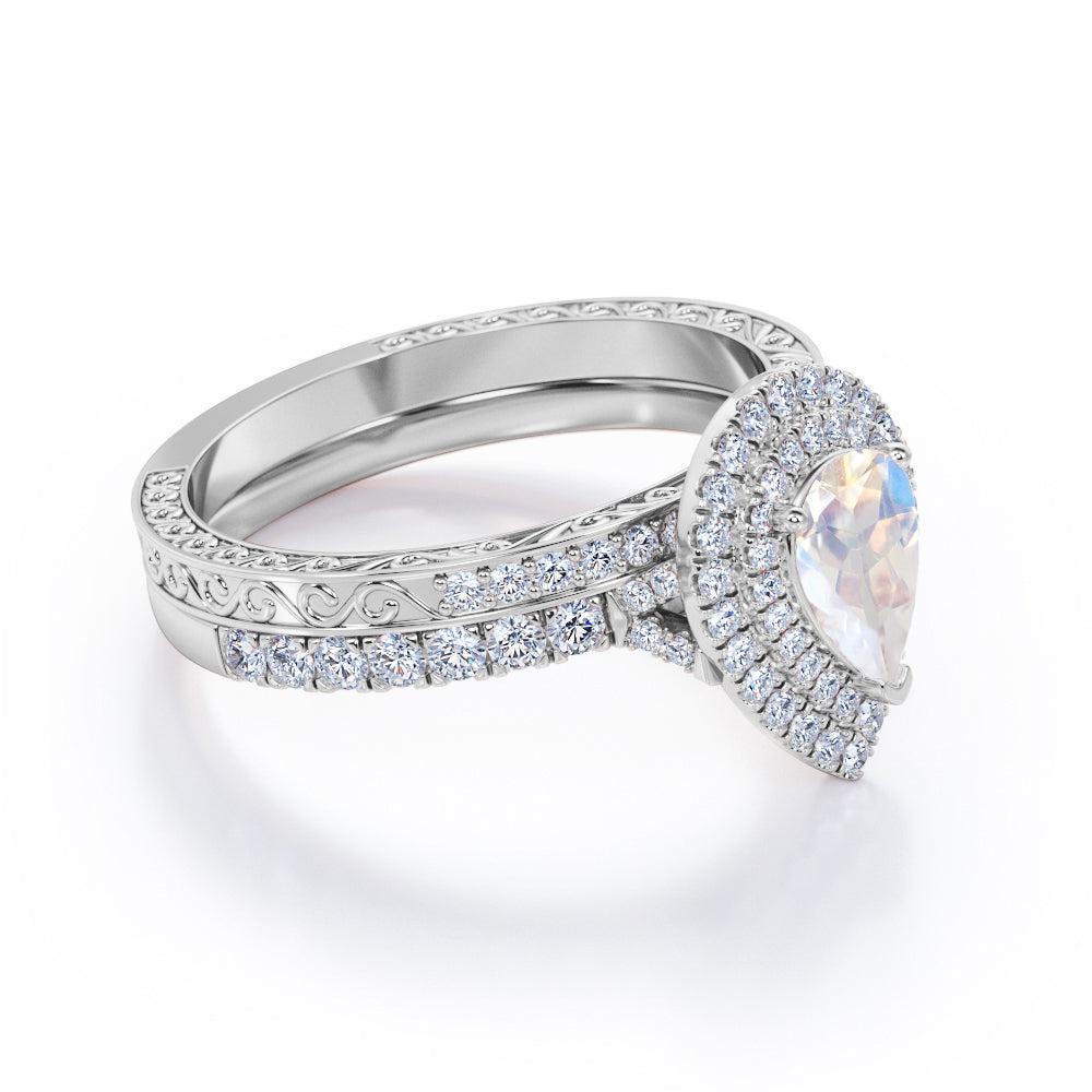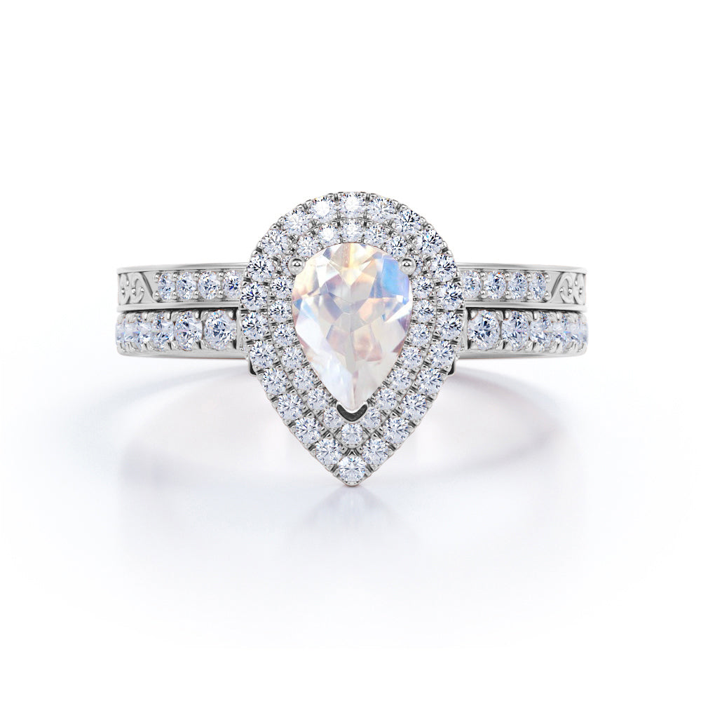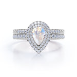 1.25 ct Teardrop Moonstone Duo Halo Bridal Set