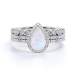 Art Deco Vintage 1.50 Carat Pear Shape Ethiopian Opal and Diamond Halo Trio Bridal Set in Rose Gold