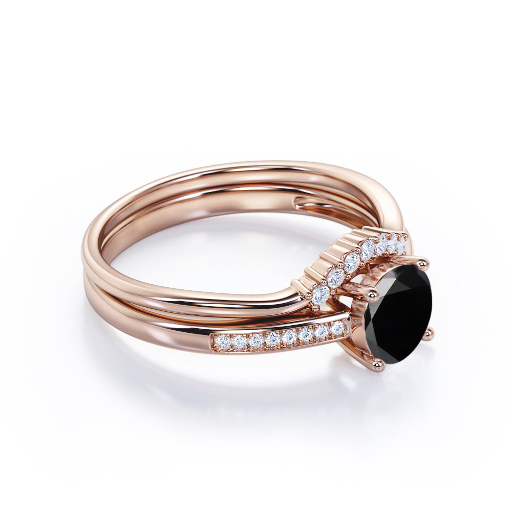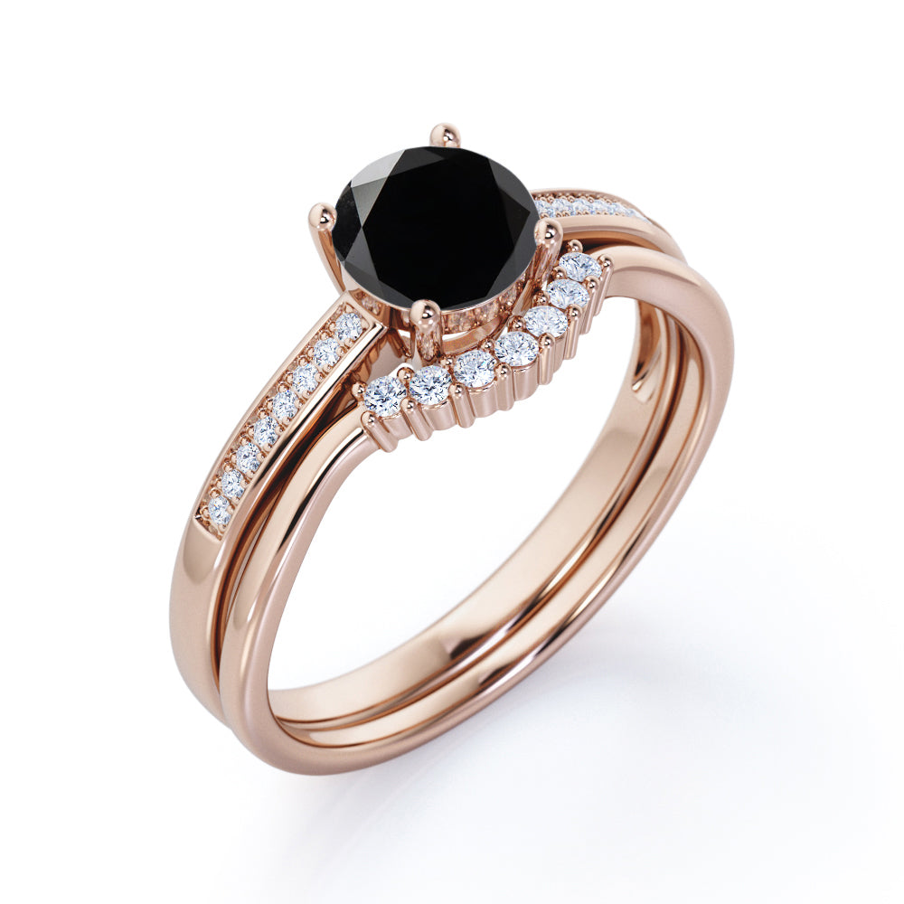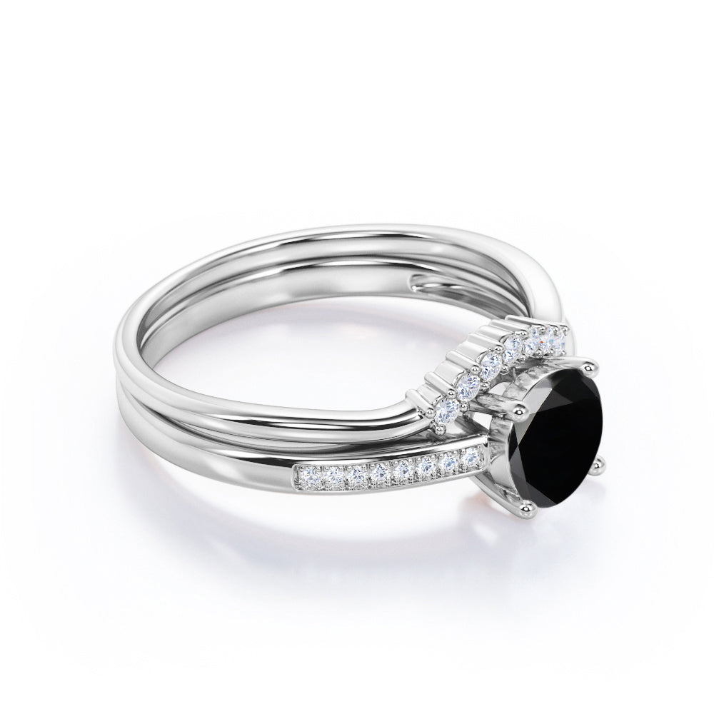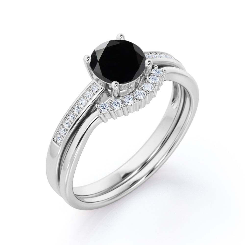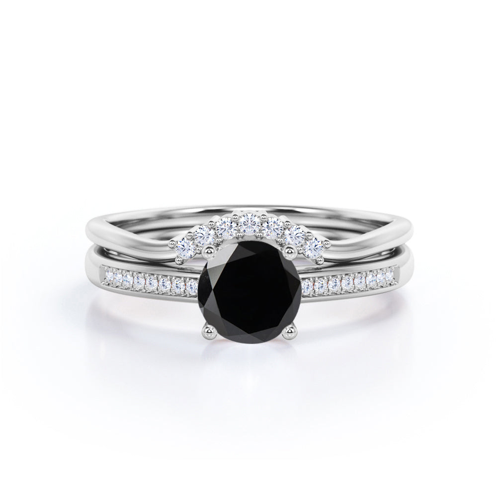 Artdeco 1.50 Carat Round cut Lab Black Diamond Wedding Bridal Ring Set in White Gold