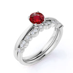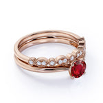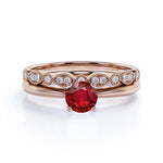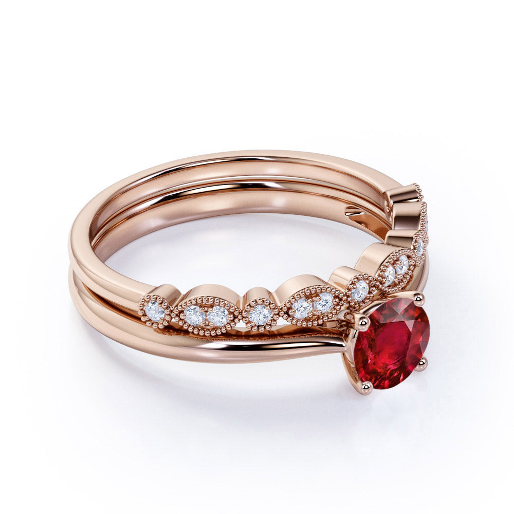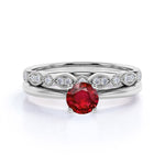 Artdeco 1.25 Carat Round cut Lab Ruby and Diamond Wedding Bridal Ring Set in White Gold