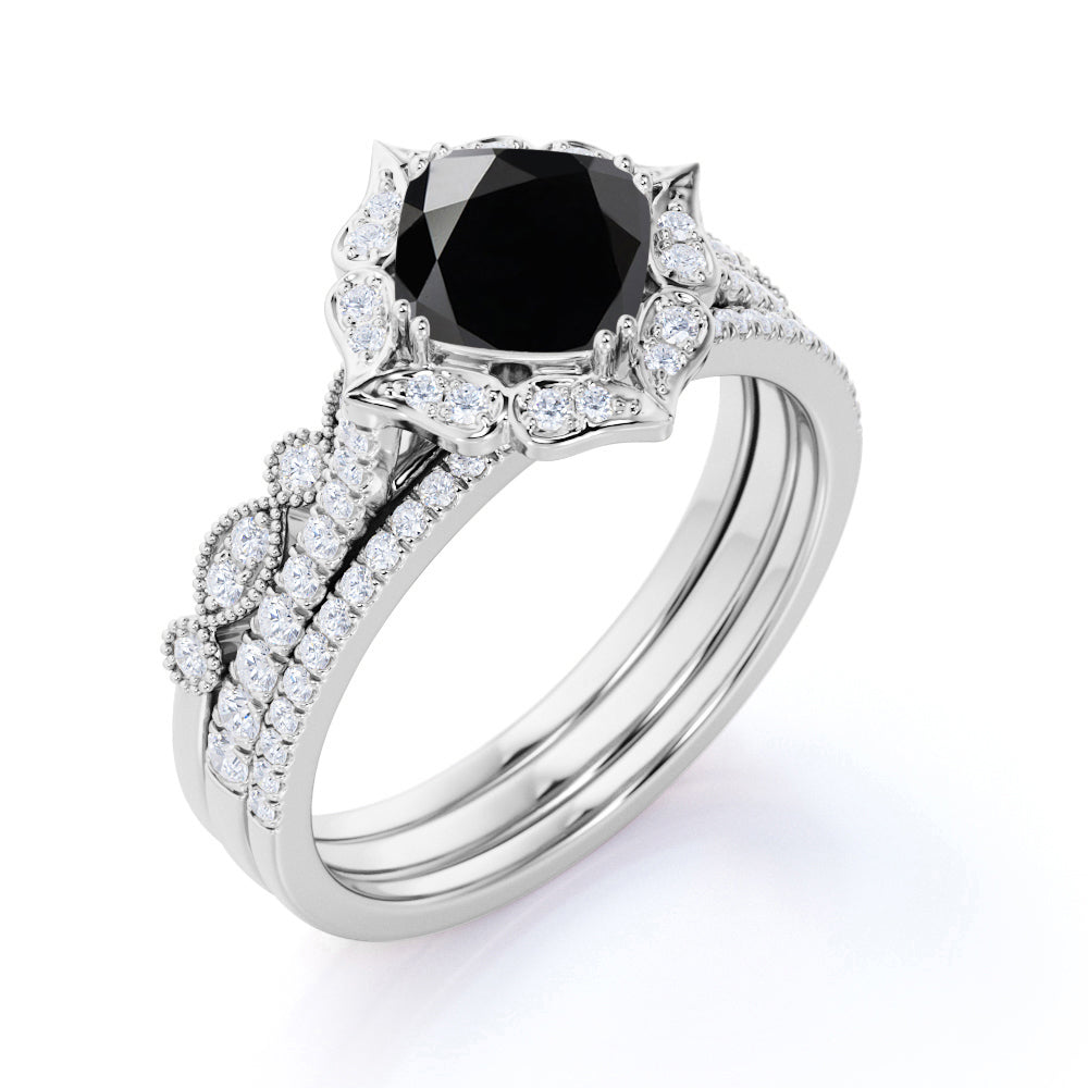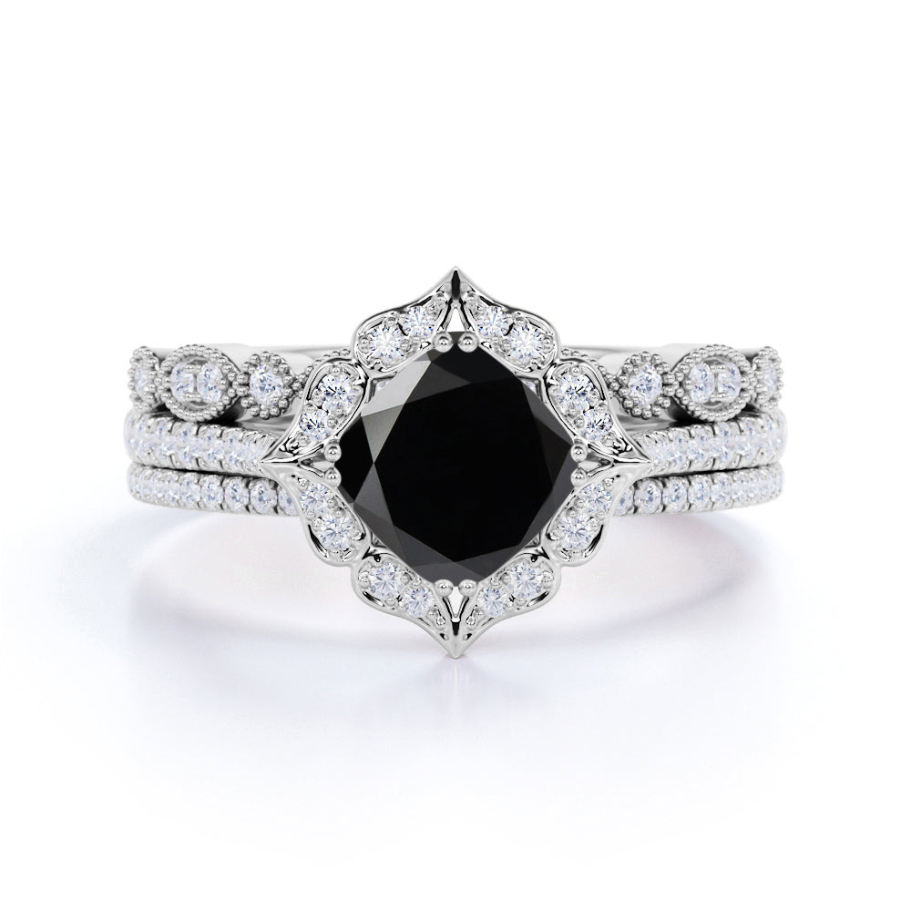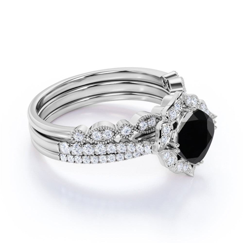2 ct Cushion Lab Black Diamond Artdeco Trio Bridal Set