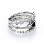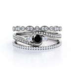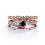 Artdeco 1.75 Carat Round cut Lab Black Diamond Trio Wedding Bridal Ring Set Rose Gold
