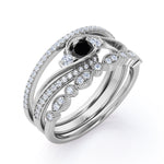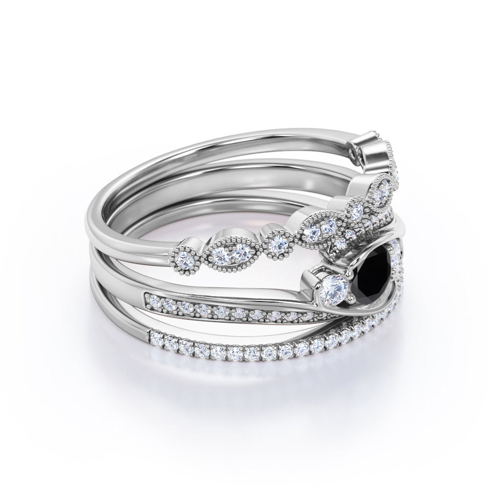 Artdeco 1.75 Carat Round cut Black Diamond Trio Wedding Bridal Ring Set Rose Gold. Fascinating antique black Diamond wedding ring set with engagement ring and wedding bands highlights total 1.75 carats perfect lab created black diamond and glittering diamonds and is made in solid 10k Rose Gold. This piece of jewelry is handmade, sporting quality craftsmanship that will last for years to come. And as always, the order comes with our 30 DAYS FULL REFUND policy, GUARANTEED DELIVERY within 5 Days, and in a BEAUTIFUL Jewelry Ring Box.