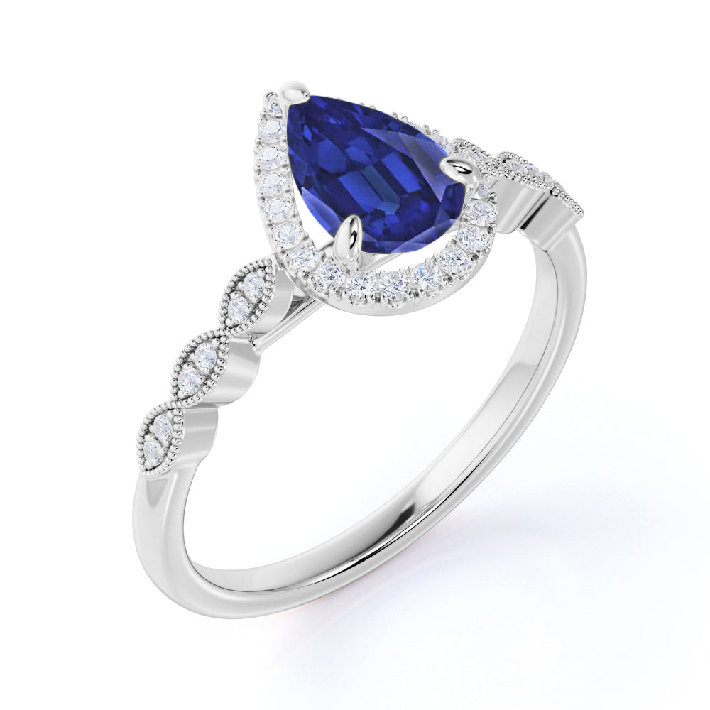 Art Deco 1.50 Ct Pear Cut Lab Sapphire Engagement Ring