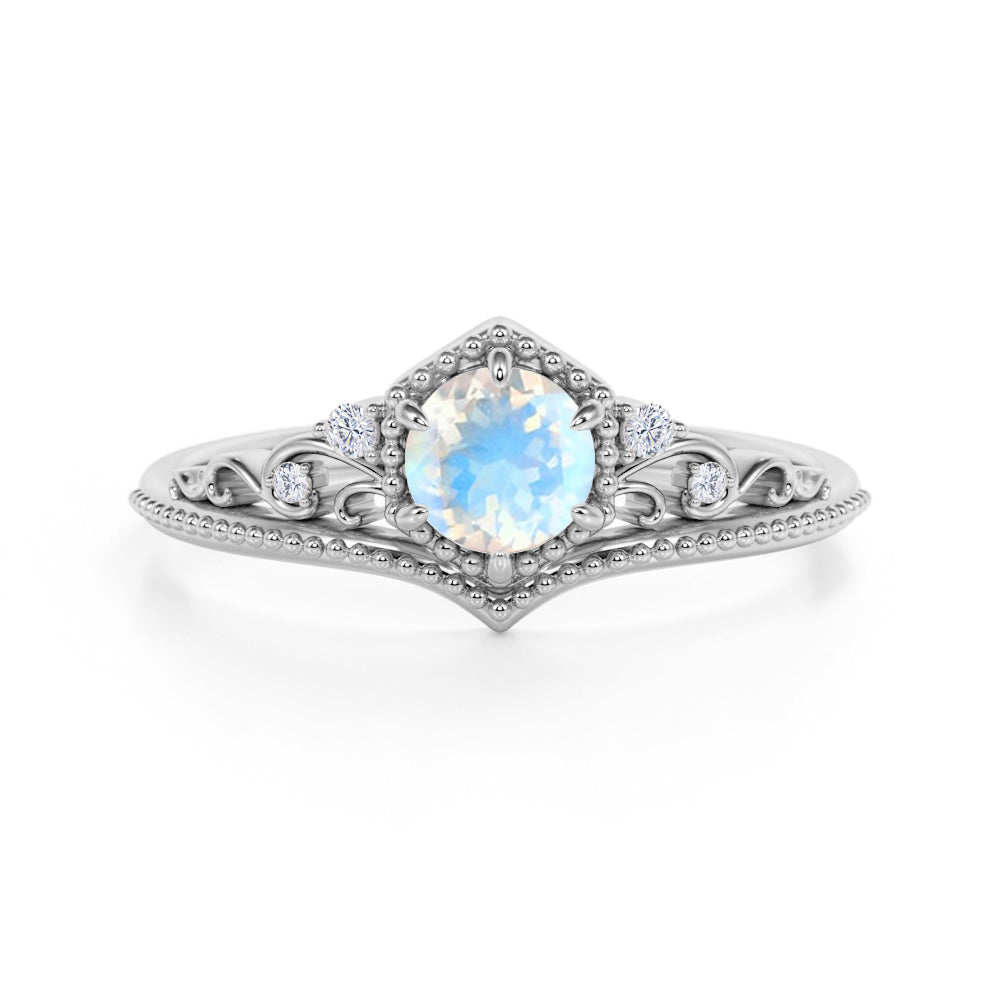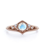 0.65 ct Round Moonstone Art Deco Engagement Ring