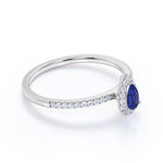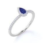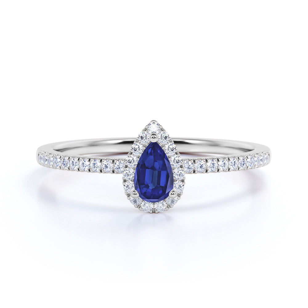1 Ct Pear Cut Lab Sapphire Halo Engagement Ring