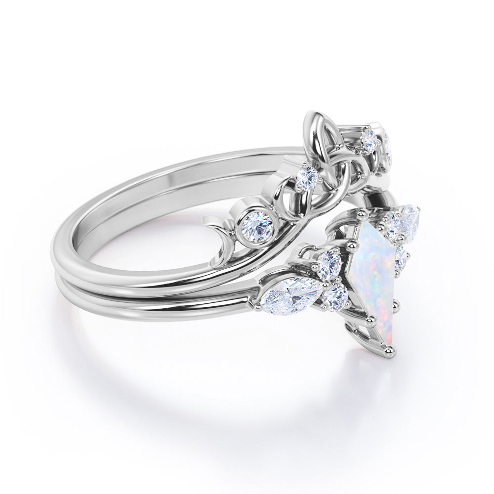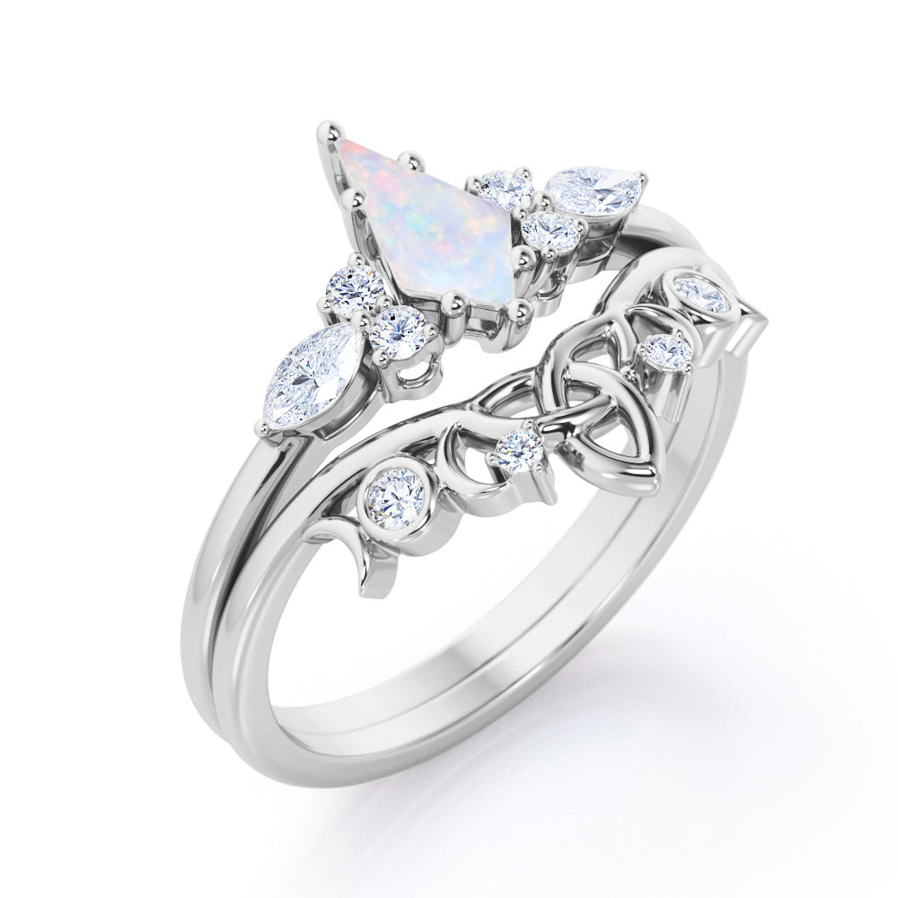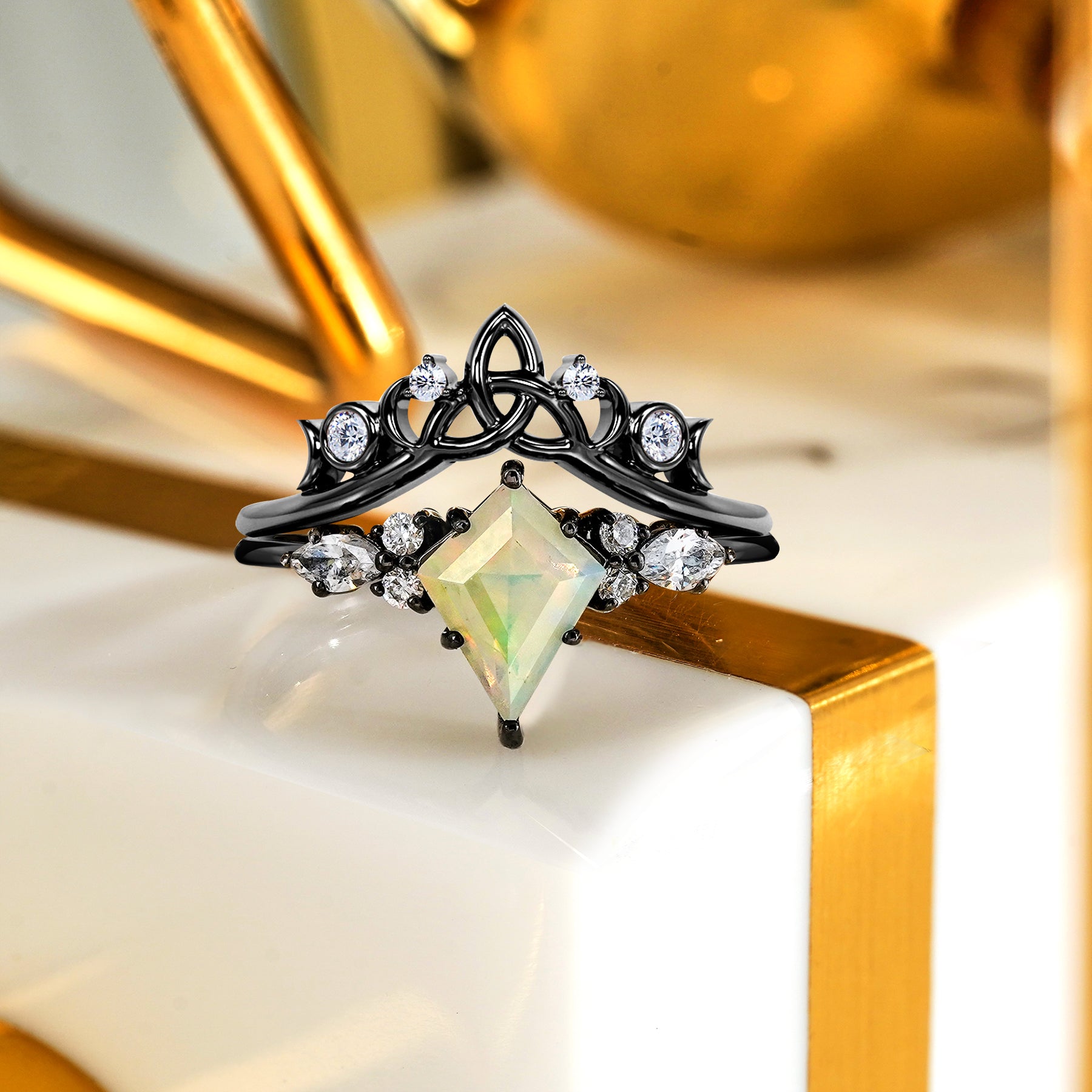 1 Ct Kite Cut Lab Created Opal Tiara Wedding Ring Set