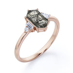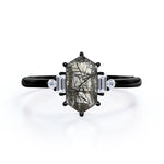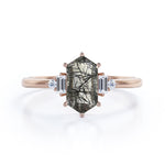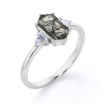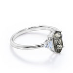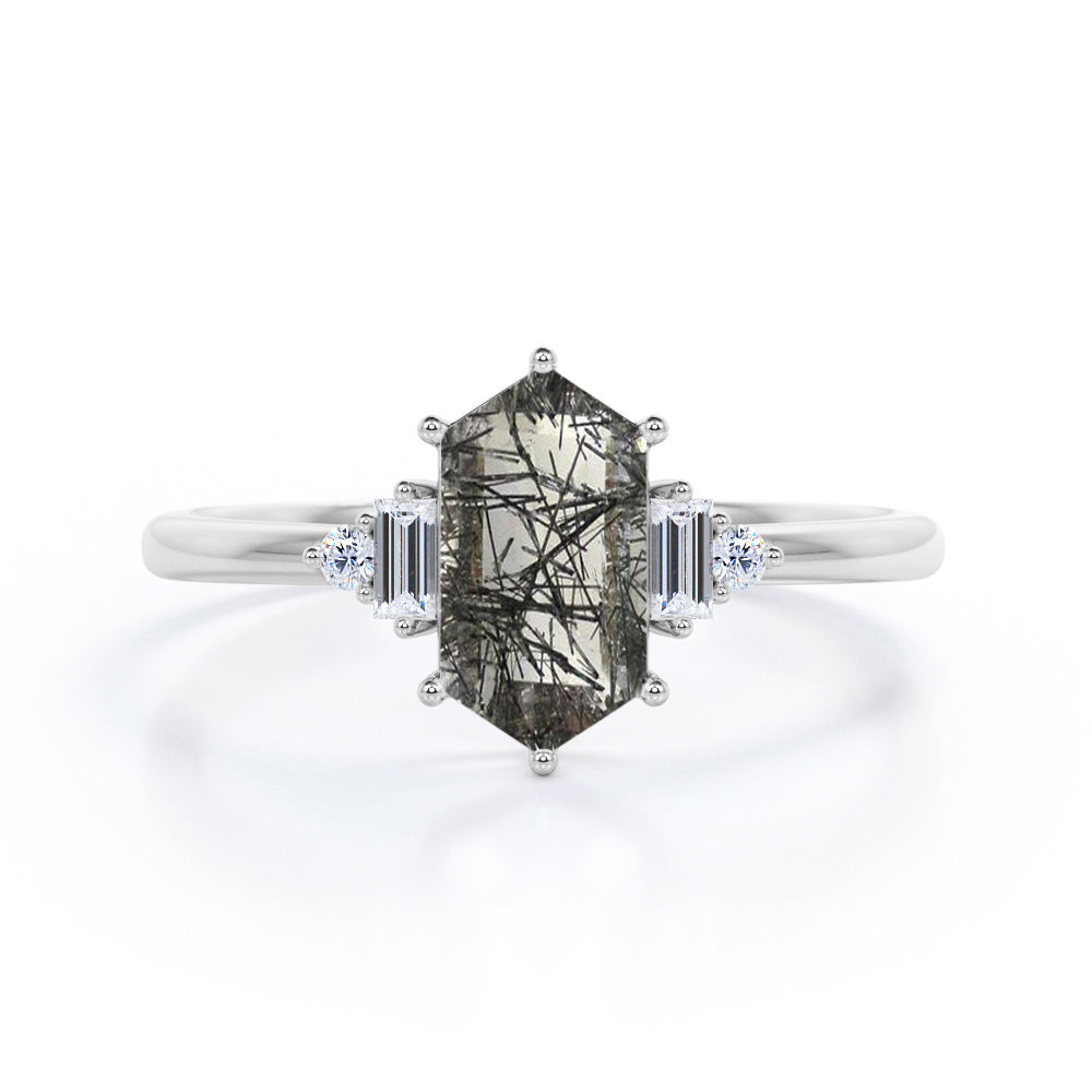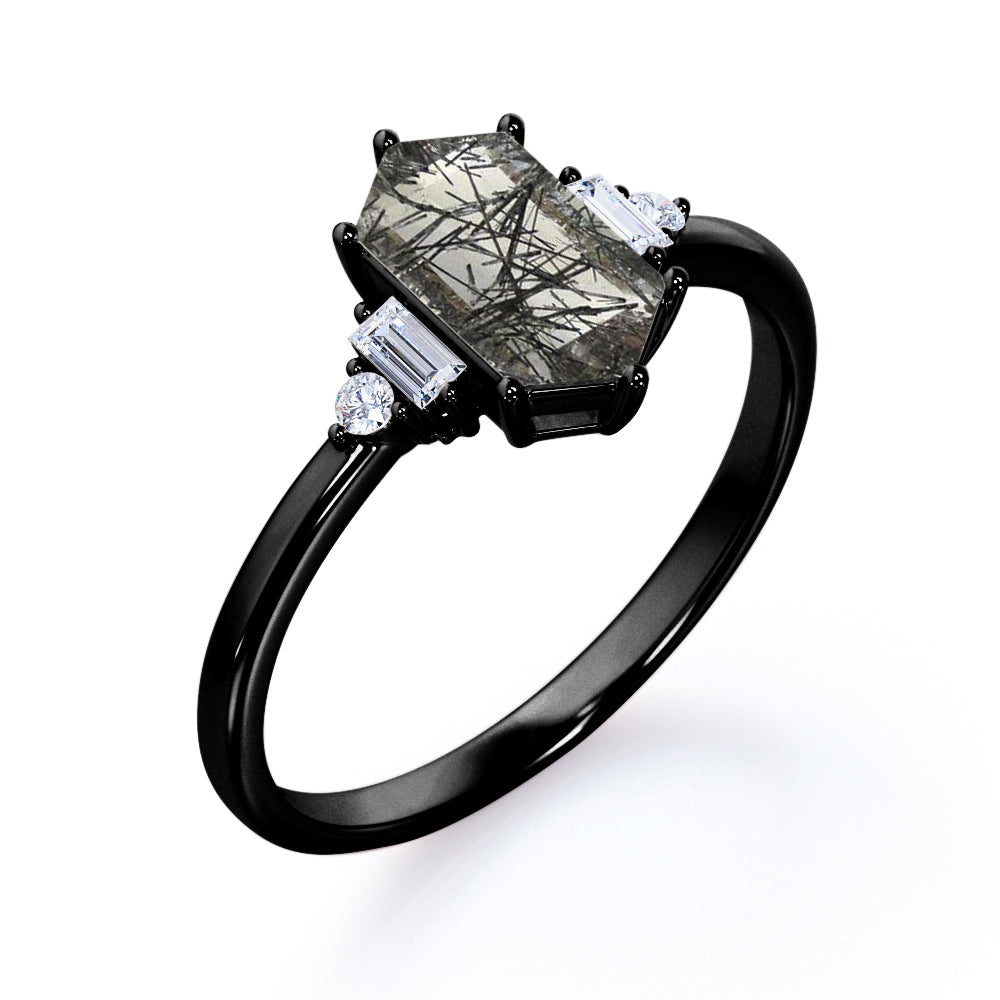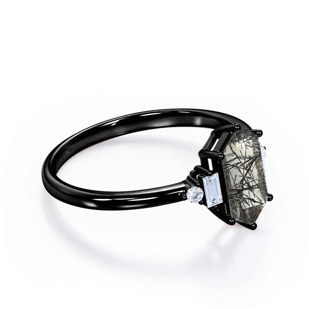 1.15 ct Hexagon Black Rutilated Quartz Five Stone Engagement Ring